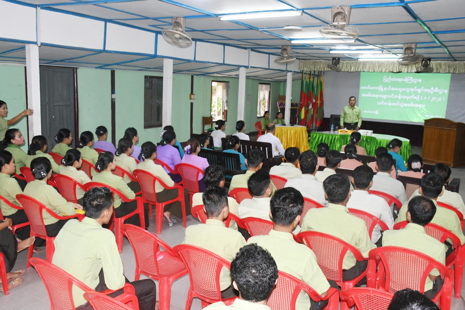 ရခိုင်ပြည်နယ်၊ မောင်တောခရိုင်၊ မောင်တောမြို့၌ မြို့နယ်အထွေထွေအုပ်ချုပ်ရေးဦးစီဌာနမှ ကြီးမှူး ဖွင့်လှစ်ခဲ့သော အခမ်းအနားမှူးသင်တန်းဆင်းပွဲကို ယမန်နေ့ နံနက် ၁၀ နာရီအချိန် မြို့နယ်အထွေထွေအုပ်ချုပ်ရေးဦးစီးဌာနရုံး အစည်းအဝေးခန်းမတွင် ကျင်းပပြုလုပ်ခဲ့သည်။