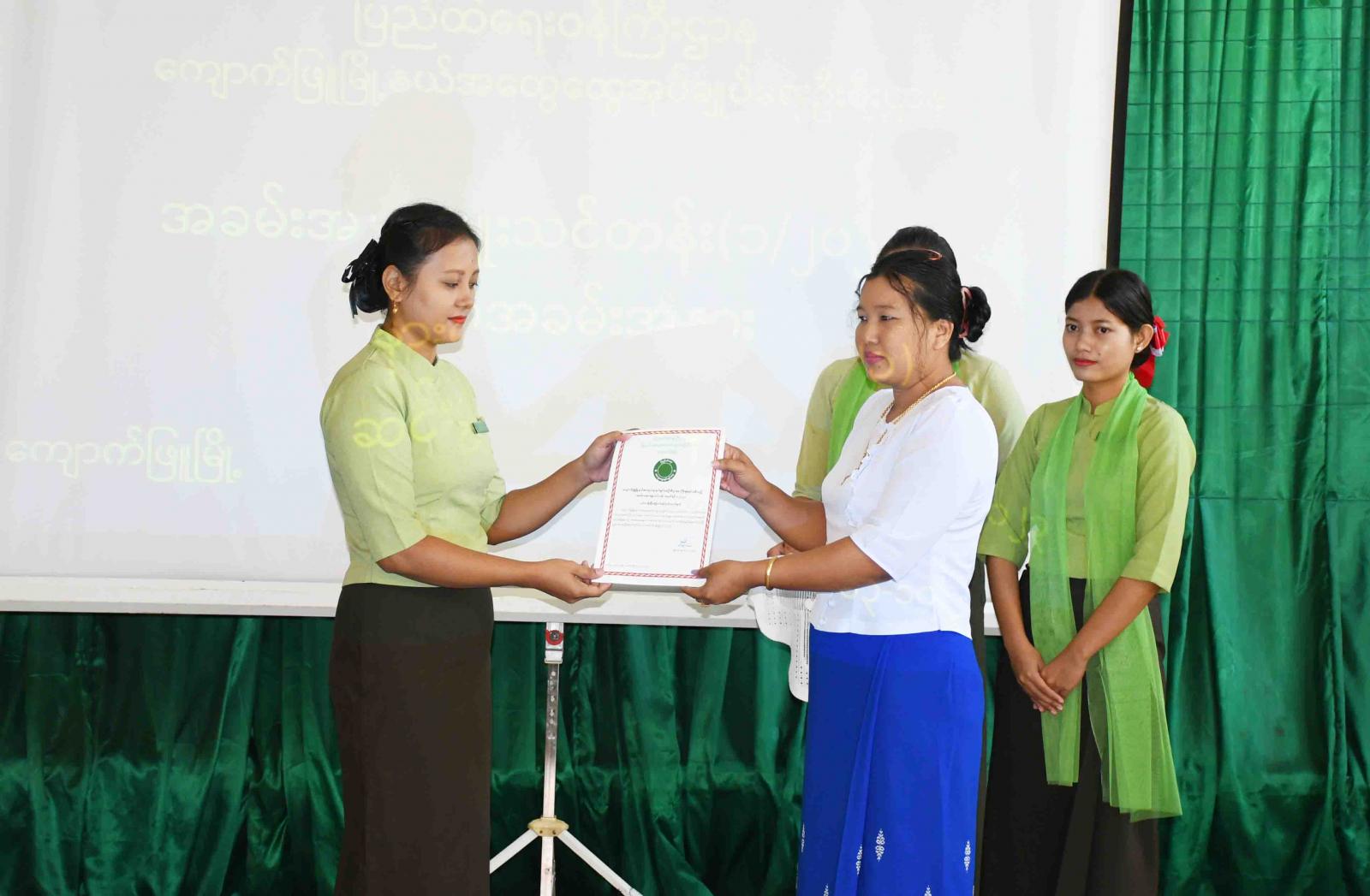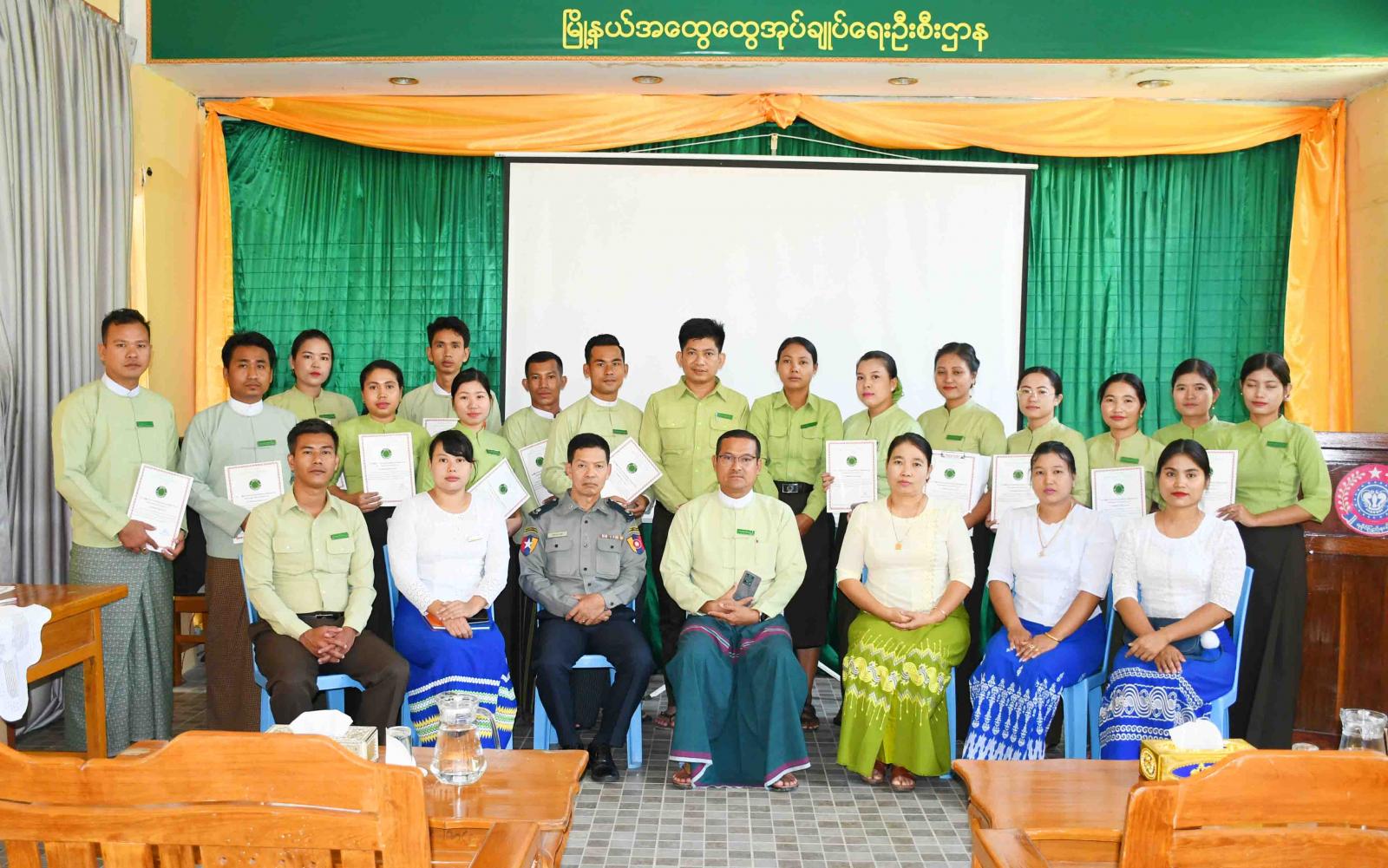 ရှေးဦးစွာ မြို့နယ်စီမံအုပ်ချုပ်ရေးအဖွဲ့ဥက္ကဋ္ဌ၊ မြို့နယ်အုပ်ချုပ်ရေးမှူး ဦးမျိုးမင်းထွဏ်းနှင့် သင်တန်းနည်းပြဆရာများက သင်တန်းသား၊ သင်တန်းသူများ၏ အခမ်းအနားမှူးများအဖြစ် လက်တွေ့သရုပ်ပြဖတ်ကြားမှုများကို ဆန်းစစ်အကဲဖြတ်ပြီး မြို့နယ်အုပ်ချုပ်ရေးမှူးက ယခုလို အခမ်းအနားမှူး သင်တန်းအား ပို့ချသင်ကြားပေးခြင်းအားဖြင့် ခရိုင်/ မြို့နယ်အတွင်းရှိ အခမ်းအနားများ၊ ဌာနဆိုင်ရာအစည်းအဝေးများ၊ ဘာသာရေးနှင့်သာသနာရေးဆိုင်ရာပွဲများ ကျင်းပသည့်အခါတွင် မလိုလားအပ်သည့် အမှားမျိုးမရှိစေဘဲ အခမ်းအနားတစ်ခုလုံးကို အဆင်ပြေပြေချောချောမွေ့မွေ့ပြီးမြောက်အောင် ဆောင်ရွက်ပေးနိုင်သည့် မြို့ဂုဏ်ဆောင် အခမ်းအနားမှူးကောင်းများ ထွက်ပေါ်လာမည်ဖြစ်ပါကြောင်းနှင့် လိုအပ်သည်များကို အကြံပြုဆွေးနွေးမှာကြားခဲ့သည်။ ထို့နောက် သင်တန်းအောင်မြင်စွာ တက်ရောက်ပြီး မြောက်ခဲ့ကြသည့် သင်တန်းသား၊ သင်တန်းသူများကို တာဝန်ရှိသူများက သင်တန်းပြီးမြောက်ကြောင်း လက်မှတ်များ ပေးအပ်ချီးမြှင့်ပြီး အမှတ်တရစုပေါင်းဓာတ်ပုံများ ရိုက်ကူးခဲ့ကြသည်။