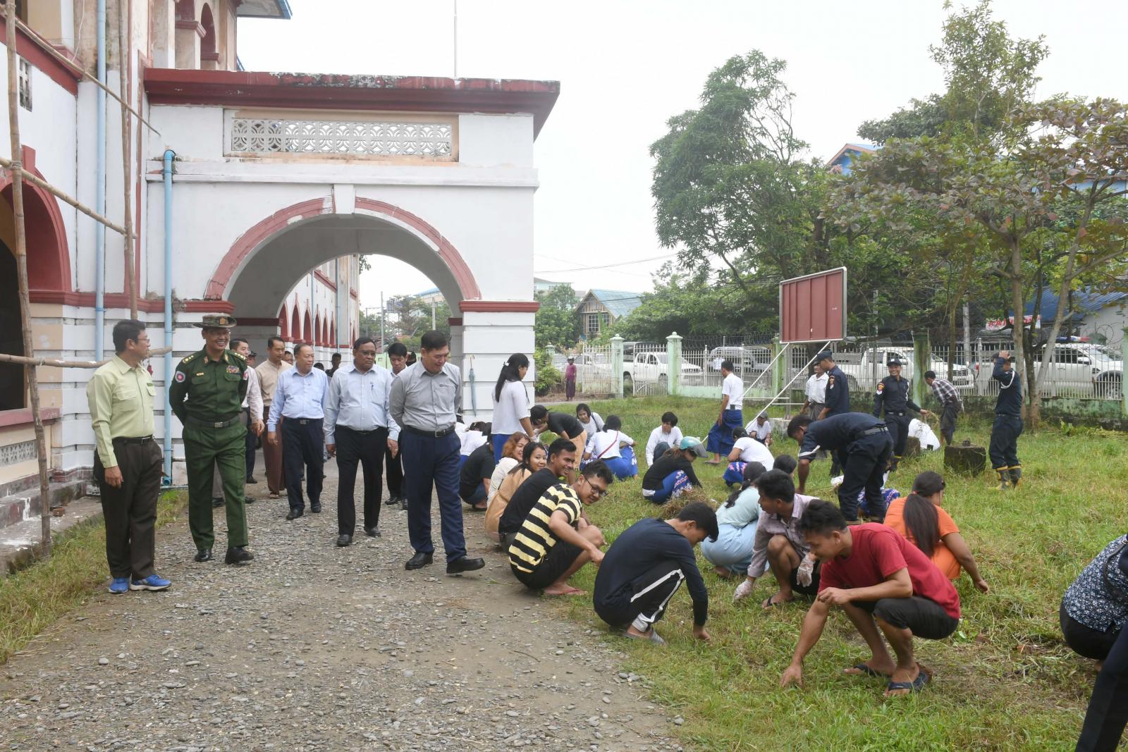 ထို့နောက် ပြည်နယ်ဝန်ကြီးချုပ်နှင့်အဖွဲ့သည် အမှတ်(၁) အခြေခံပညာအထက်တန်းကျောင်း၌ ဌာနဆိုင်ရာ ဝန်ထမ်းများ စုပေါင်းသန့်ရှင်းရေး ဆောင်ရွက်နေမှုအား လှည့်လည်ကြည့်ရှုပြီး စိုက်ပျိုး၊ မွေးမြူရေးကျောင်း သန့်ရှင်းသာယာရေး ဆောင်ရွက်ရန် တာဝန်ရှိသူများအား မှာကြားခဲ့ သည်။