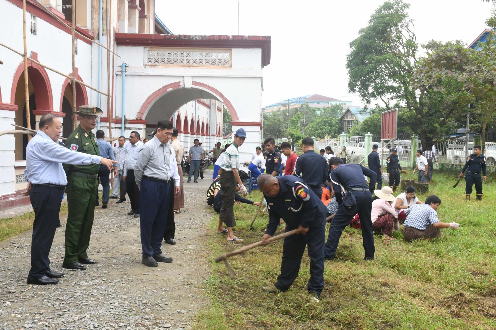 ဦးစွာ ပြည်နယ်ဝန်ကြီးချုပ်နှင့် အဖွဲ့အား အာရီယန်ခန်းမ၌ ပြည်နယ်စည်ပင်သာယာရေးအဖွဲ့၊ ညွှန်ကြားရေးမှူး ဦးကျော်မိုးက စစ်တွေမြို့တော် အဆင့်မြှင့်တင်ရေးအတွက် ဆောင်ရွက်မည့်အစီအမံများနှင့် မြို့သန့်ရှင်း သာယာလှပရေးဆောင်ရွက်နေမှုတို့ကို ရှင်းလင်းတင်ပြရာ ပြည်နယ်ဝန်ကြီးချုပ်က ပြန်လည်ဆွေးနွေး ပြောကြားပြီး လိုအပ်သည်များကို မှာကြားခဲ့သည်။ ဆက်လက်၍ ပြည်နယ်ဝန်ကြီး ချုပ်နှင့် အဖွဲ့သည် စစ်တွေ ဆေးရုံကြီး၌ စစ်တွေတပ်နယ်မှ နယ်မြေခံတပ်မတော်သားများ၊ ရဲတပ်ဖွဲ့ဝင်များ၊ ဌာနဆိုင်ရာများ စုပေါင်း သန့်ရှင်းရေးဆောင်ရွက်နေမှုအား လှည့်လည်ကြည့်ရှုပြီး လိုအပ်သည်များကို တာဝန်ရှိသူများနှင့် ပေါင်းစပ် ညှိနှိုင်းပေးခဲ့သည်။