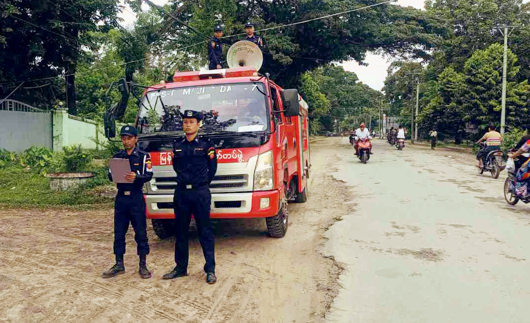 ရခိုင်ပြည်နယ် မောင်တောမြို့၌ မီးဘေးအန္တရာယ်ကြိုတင်ကာကွယ် အသိပညာပေးနှိုးဆော်ခြင်းကို မြို့နယ်မီးသတ်ဦးစီးဌာနမှ တပ်ဖွဲ့ဝင်များက ယမန်နေ့ညနေ ၄ နာရီအချိန်ခန့် မြို့ပေါ်ရပ်ကွက်များအတွင်း လိုက်လံနှိုးဆော်ခဲ့ကြသည်။