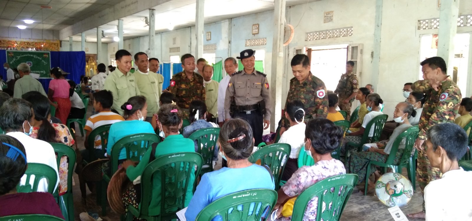 ရခိုင်ပြည်နယ်၊ အမ်းခရိုင်၊ အမ်းမြို့နယ်၊ တပ်တောင်မြို့နှင့်ပတ်ဝန်းကျင် ကျေးရွာများမှ ဒေသခံပြည်သူများအား အနောက်ပိုင်းတိုင်းစစ်ဌာနချုပ် ဒုတိယတိုင်းမှူး၏ဦးဆောင်မှုဖြင့် ဗျူဟာမှူး ဒုတိယဗိုလ်မှူးကြီးဝဏ္ဏအောင်နှင့် အမှတ်(၂)တပ်မတော်စစ်ဆေးရုံ ကုတင်(၃၀၀)မှ နယ်လှည့်ဆေးကုသရေးအဖွဲ့မှ ပါရဂူများ၊ ဆေးမှူးများ၊ သူနာပြုများပါဝင်သော ဆေးကုသရေးအဖွဲ့က ကျန်းမာရေးစောင့်ရှောက်မှုလုပ်ငန်းများကို ယမန်နေ့နံနက်ပိုင်းက တပ်တောင်မြို့အမှတ် (၃)ရပ်ကွက် သာသနာ့ဝေပုလ္လာရာမကျောင်းတိုက်ဓမ္မာရုံ၌ ကျန်းမာရေးစောင့်ရှောက်မှုလုပ်ငန်းများ ဆောင်ရွက်ပေးခဲ့ကြောင်း သတင်းရရှိသည်။