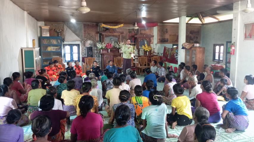 ထိုသို့ မီးဘေးအန္တရာယ် ကြိုတင်ကာကွယ်ရေးအတွက် တစ်အိမ်တက်ဆင်းစစ်ဆေးရာတွင် ဒုတိယမြို့နယ်အုပ်ချုပ်ရေးမှူး ဦးကျော်လင်းအောင်၊ မြို့နယ်ဘေး/စီမံဦးစီးမှူး ဦးကျော်လွင် ယာယီနေရပ်စွန့်ခွာသူများ စခန်းတာဝန်ခံတို့နှင့် ပူးပေါင်းပြီး မြို့နယ်မီးသတ်ဦးစီးမှူး ဦးလူမော်နှင့် မီးသတတပ်ဖွဲ့ဝင်များက အရှေ့မြောက်ရပ်ကွက်ရှိ ရွှေပါရမီ (ယာယီနေရပ်စွန့်ခွာသူများစခန်း) အတွင်းရှိ မိဘပြည်သူများအနေဖြင့် မီးဘေးအန္တရာယ် ကင်းဝေးစေရေးနှင့် မီးလောင်ကျွမ်းမှု မဖြစ်ပေါ်စေရေးတို့အတွက် မီးသတ်ဦးစီးဌာနမှ ထုတ်ပြန်ထားသော မီးဘေးလုံခြုံရေးဆိုင်ရာ ညွှန်ကြားချက်များဖြစ်သည့် မီးချိတ်၊ မီးကပ်၊ သဲအိတ်နှင့် မီးသတ်ဆေးဗူးစသော မီးဘေးကာကွယ်ရေးပစ္စည်းများ အသင့်ထားရှိရေး၊ လောင်စာဆီများသို လှောင်ခြင်းမပြုရန်၊ တပ်ဆင်ထားသော ဟောင်းနွမ်းလျှပ်စစ်ဝါယာကြိုးများနှင့် ပျက်စီးနေသော လျှပ်စစ်ပစ္စည်းများ အသုံးမပြုကြရန်၊ မီးသွေးမီးဖိုဖြင့် ထမင်း၊ ဟင်းချက်ပြုတ်ပြီးပါက မီးကြွင်းမီးကျန်များအား စနစ်တကျ မီးငြှိမ်းသတ်ကြရန်စသည့် မီးဘေးအန္တရာယ် မဖြစ်ပေါ်စေရေးနှင့် ကြိုတင်ကာကွယ်ရေးအတွက် ဆောင်ရန်/ရှောင်ရန်အချက်များအား ကွင်းဆင်းစစ်ဆေး အသိပညာပေး ဟောပြောခဲ့ကြောင်း သိရသည်။