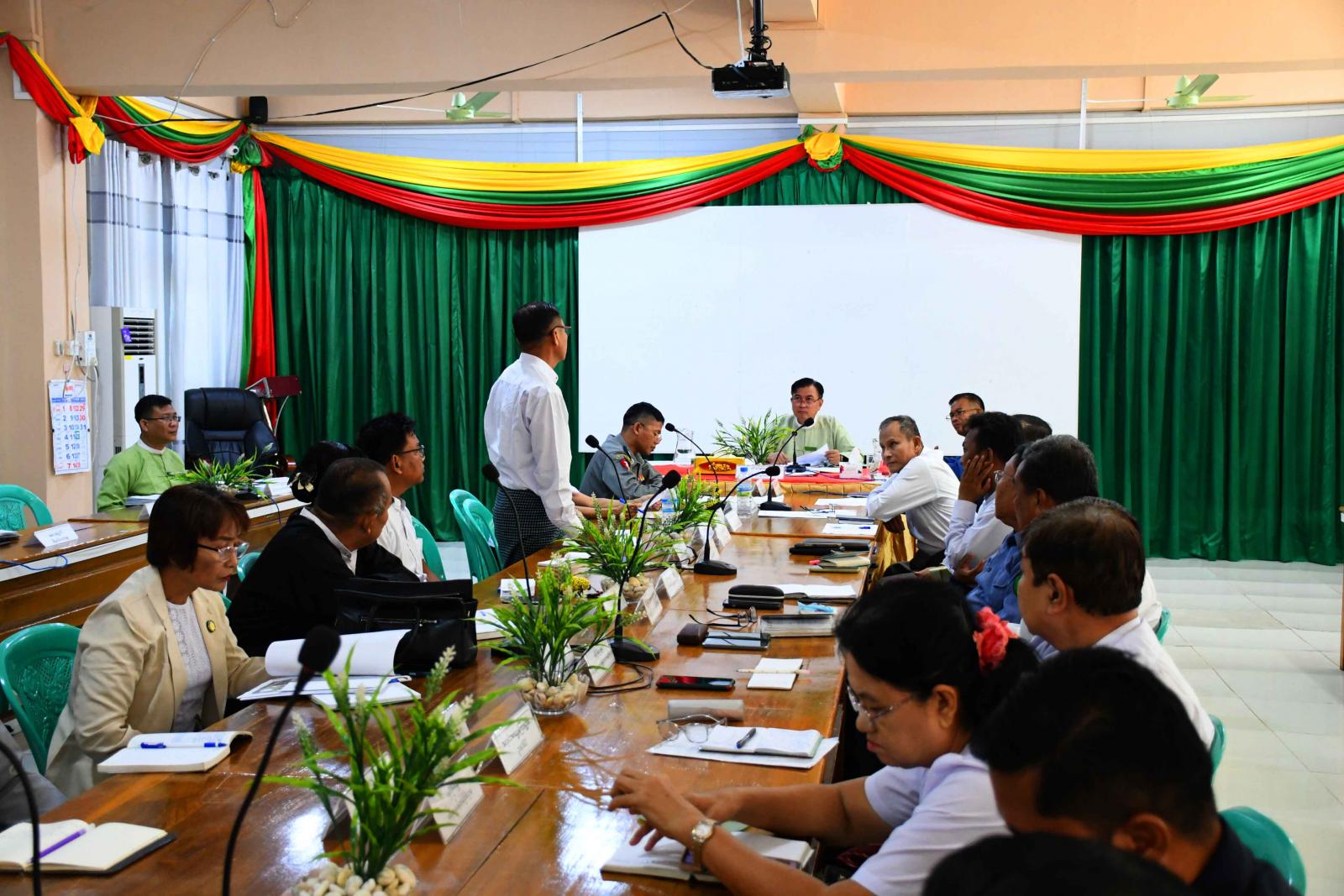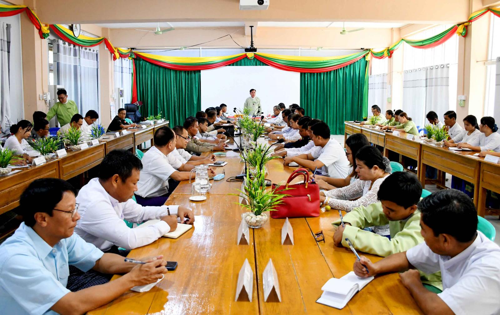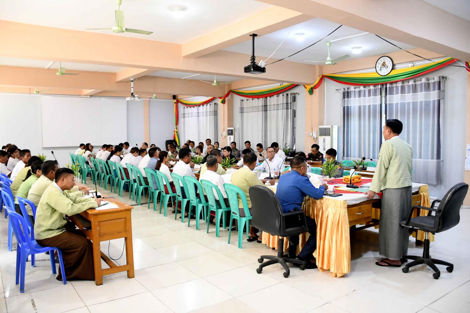ရခိုင်ပြည်နယ်၊ ကျောက်ဖြူခရိုင် အထွေထွေအုပ်ချုပ်ရေးဦးစီးဌာန၌ ခရိုင်စီမံအုပ်ချုပ်ရေးအဖွဲ့နှင့် ဌာနဆိုင်ရာများ၏ အပတ်စဉ်ပုံမှန်လုပ်ငန်းညှိနှိုင်းအစည်းအဝေးကို ယနေ့နံနက် ၁၀ နာရီက အဆိုပါ ဦးစီးဌာနရုံး အစည်းအဝေးခန်းမတွင် ကျင်းပပြုလုပ်ရာ ခရိုင်စီမံအုပ်ချုပ်ရေးအဖွဲ့ ဉက္ကဋ္ဌနှင့် အဖွဲ့ဝင်များ၊ ခရိုင်အဆင့် ဌာနဆိုင်ရာများ၊ ဖိတ်ကြားထားသည့် ဌာနဆိုင်ရာများ တက်ရောက်ကြသည်။