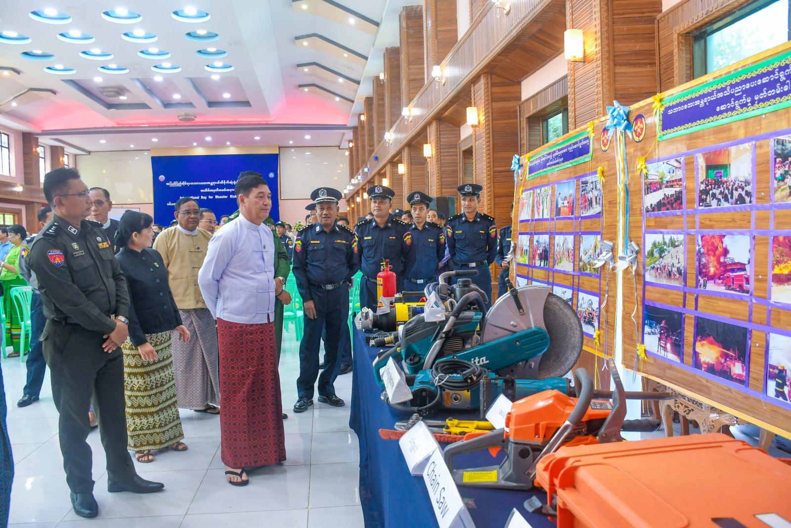 ထို့နောက် ပြည်နယ်ဝန်ကြီးချုပ်နှင့် အခမ်းအနားသို့ တက်ရောက်လာကြသူများသည် ခန်းမအတွင်းပြသထားသည့် အပြည်ပြည်ဆိုင်ရာသဘာဝဘေးအန္တရာယ် ထိခိုက်ဆုံးရှုံးနိုင်ခြေလျှော့ချရေးနေ့ အထိမ်းအမှတ်ပြခန်းများအား လှည့်လည်ကြည့်ရှုကြသည်။