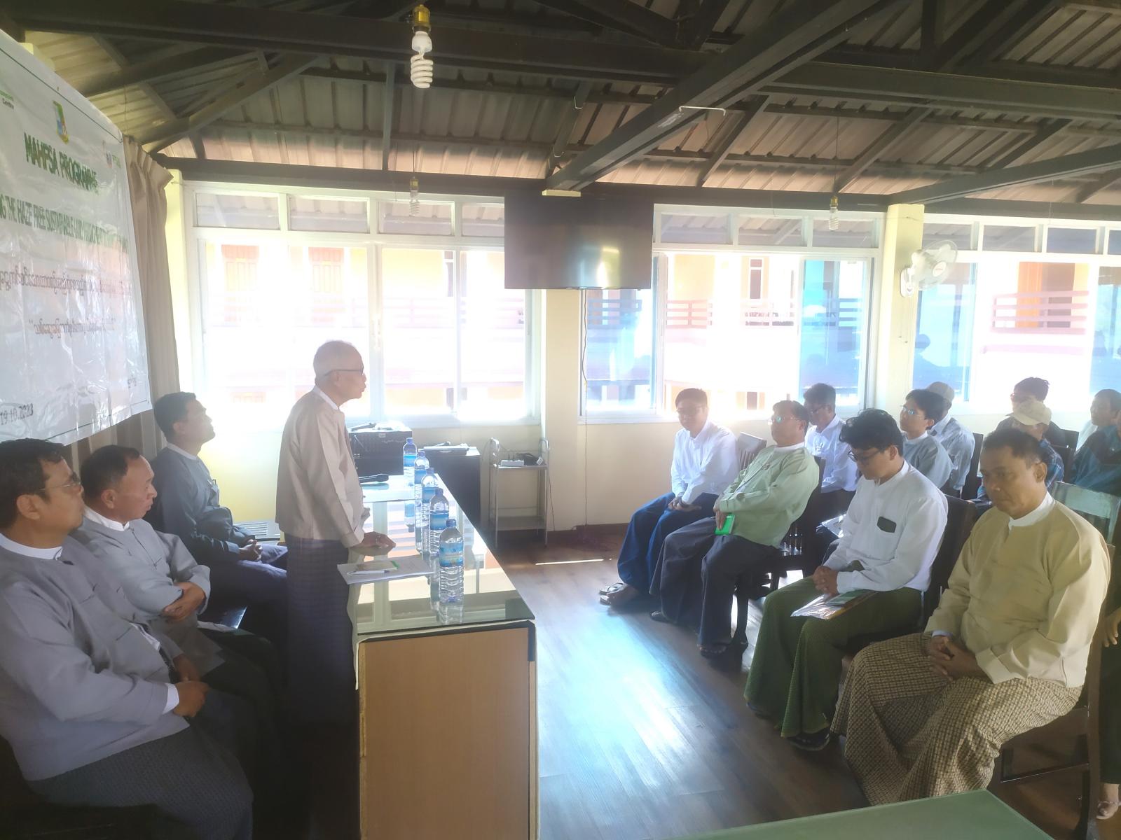 မီးခိုးမြူငွေ့ကင်းစင်သော ထာဝစဉ်တည်တံ့စေသည့် လယ်ယာမြေစီမံအုပ်ချုပ်မှု မြှင့်တင်စေရန် ရည်ရွယ်ချက်ဖြင့် ရှမ်းပြည်နယ် ပတ်ဝန်းကျင်ထိန်းသိမ်းရေးဦးစီးဌာနနှင့် သစ်တောသယံဇာတနှင့် ပတ်ဝန်းကျင်ဖွံ့ဖြိုးတိုးတက်ရေးအသင်း (FREDA) တို့ ပူးပေါင်းဆောင်ရွက်သည့် သစ်ဆွေးမြေဘက်စုံ မီးကာကွယ်ရေး စီမံချက်သင်တန်းဖွင့်ပွဲကို ယနေ့ နံနက်(၉)နာရီခွဲက ရှမ်းပြည်နယ် ညောင်ရွှေမြို့ Grand Inle Hotel ခန်းမ၌ ပြုလုပ်ခဲ့သည်။