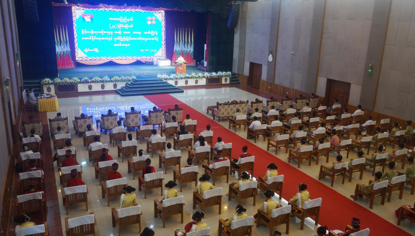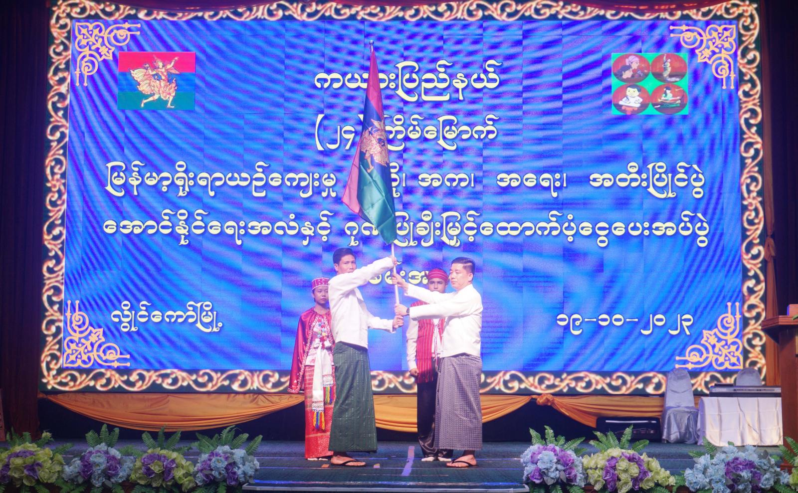 (၂၄) ကြိမ်မြောက် မြန်မာ့ရိုးရာ အဆို၊ အက၊ အရေး၊ အတီး ပြိုင်ပွဲ (ဗဟို) အဆင့်သို့ သွားရောက်ယှဉ်ပြိုင်မည့် ပြည်နယ်ကိုယ်စားပြုပြိုင်ပွဲဝင်များအား အောင်နိုင်ရေးအလံနှင့် ဂုဏ်ပြုချီးမြှင့် ထောက်ပံ့ငွေပေးအပ်ခြင်း အခမ်းအနားကို ယမန်နေ့မွန်းလွဲပိုင်းက လွိုင်ကော်မြို့၊ ပြည်နယ်ခန်းမ၌ ကျင်းပပြုလုပ်ခဲ့သည်။
