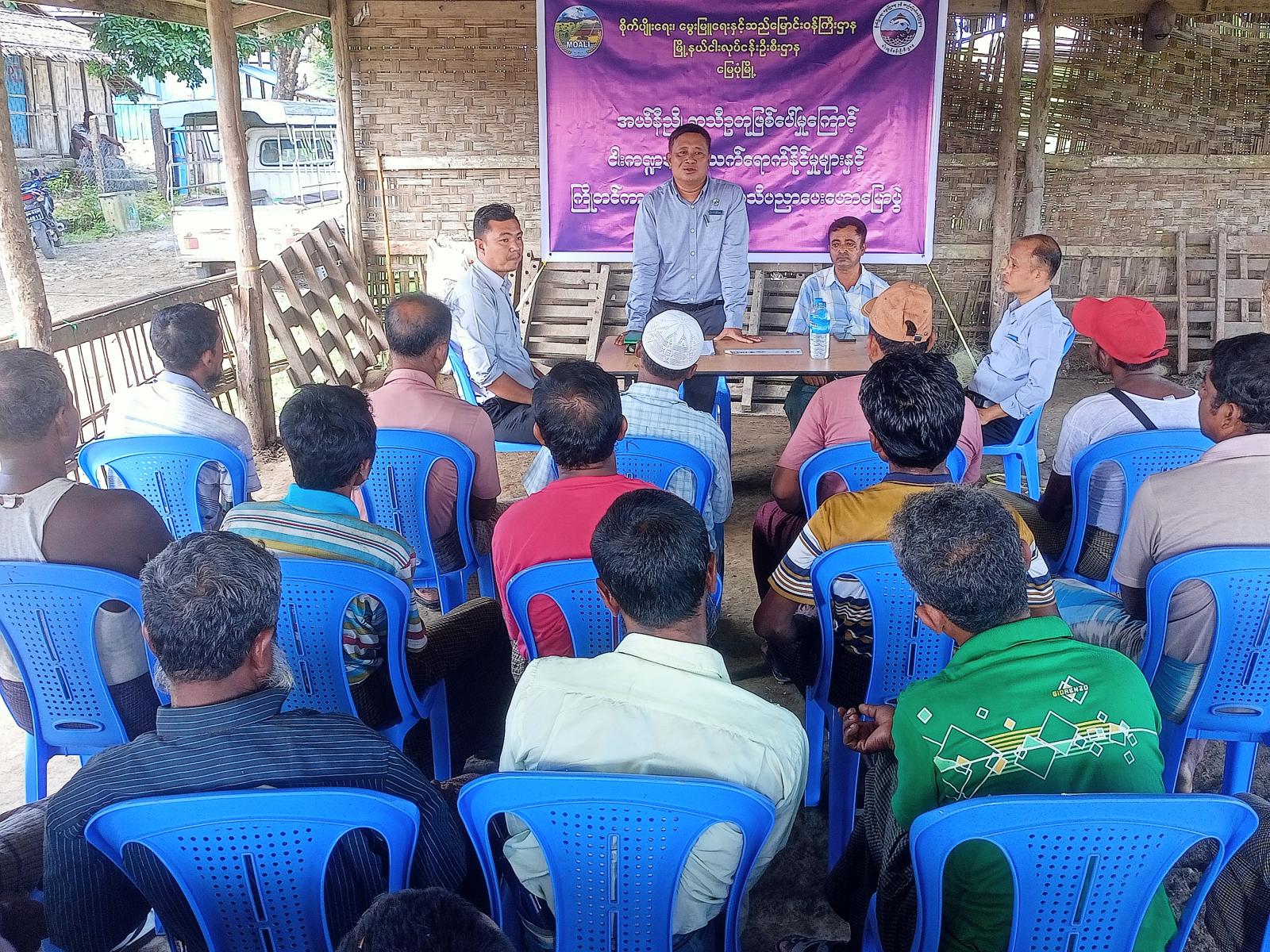 အယ်လ်နီညို ရာသီဥတုဖြစ်ပေါ်မှုကြောင့် ငါး/ပုစွန်မွေးမြူရေးကဏ္ဍများအပေါ် သက်ရောက်နိုင်မှုများမှ ကြိုတင်ကာကွယ်နိုင်ရေး အသိပညာပေးဟောပြောပွဲကို ယမန်နေ့ နံနက် ၉ နာရီက မြေပုံမြို့၊ တောင်ပေါ်ရပ်ကွက် ရှင်းလင်းဆောင်၌ ပြုလုပ်သည်။