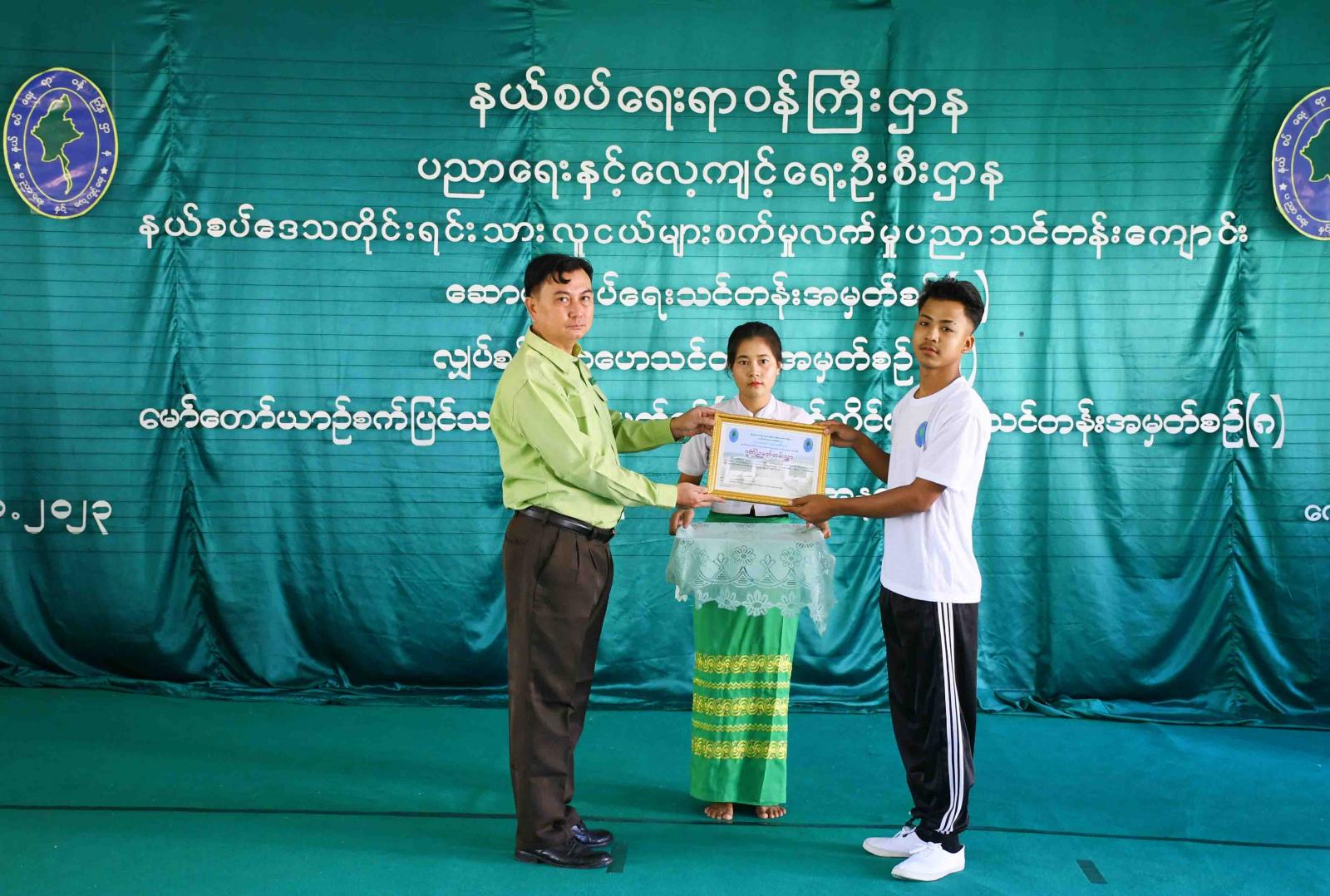 နယ်စပ်ရေးရာဝန်ကြီးဌာန၊ ပညာရေးနှင့်လေ့ကျင့်ရေးဦးစီးဌာန၊ နယ်စပ်ဒေသတိုင်းရင်း သားလူငယ်များစက်မှုလက်မှုပညာသင်တန်းကျောင်း (ကျောက်ဖြူ)၌ ဆောက်လုပ်ရေးသင်တန်း အမှတ်စဉ်(၉)၊ လျှပ်စစ်နှင့်ဂဟေသင်တန်း အမှတ်စဉ်(၁၂)၊ မော်တော်ယာဉ်စက်ပြင်သင်တန်း အမှတ်စဉ်(၄)နှင့် လက်ကိုင်ဖုန်းပြင်သင်တန်း အမှတ်စဉ်(၈)စသည့်သင်တန်းများ သင်တန်းဆင်းပွဲအခမ်းအနားကို ယနေ့နံနက်ပိုင်းက အဆိုပါ စက်မှုလက်မှုပညာသင်တန်းကျောင်းခန်းမ၌ ကျင်းပပြုလုပ်သည်။