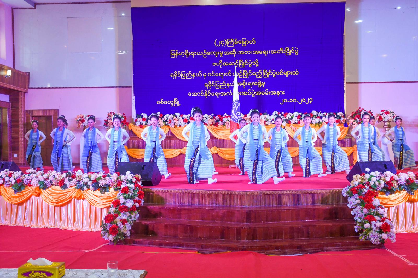 ဆက်လက်၍ ရခိုင်ပြည်နယ်ဝန်ကြီးချုပ် ဦးထိန်လင်းက ပြည်နယ်လူမှုရေးရာဝန်ကြီး ဦးစောနိုင် ထံ အောင်နိုင်ရေးအလံပေးအပ်သည်။ ထို့နောက် ဗဟိုအဆင့်ပြိုင်ပွဲတွင် သွားရောက်ယှဉ်ပြိုင် ကြမည့် အခြေခံပညာကျောင်းများမှ ကျောင်းသူလေးများက ကဗျာလွတ်အက၊ ရှမ်းတိုင်းရင်းသားရိုးရာ အက တို့ဖြင့် ကပြဖျော်ဖြေကြပြီး အဆိုပြိုင်ပွဲဝင်များနှင့် အတီးပြိုင်ပွဲဝင်များက သီဆိုတီးခတ်ဖျော်ဖြေ ကြသည်။ ယင်းနောက် ပြည်နယ်ဝန်ကြီးချုပ်နှင့်ဇနီးတာဝန်ရှိသူများက ပြိုင်ပွဲဝင်များနှင့် နည်းပြများ၊ အုပ်ချုပ်သူများအား ရင်းရင်းနှီးနှီးလိုက်လံနှုတ်ဆက်ကြသည်။
