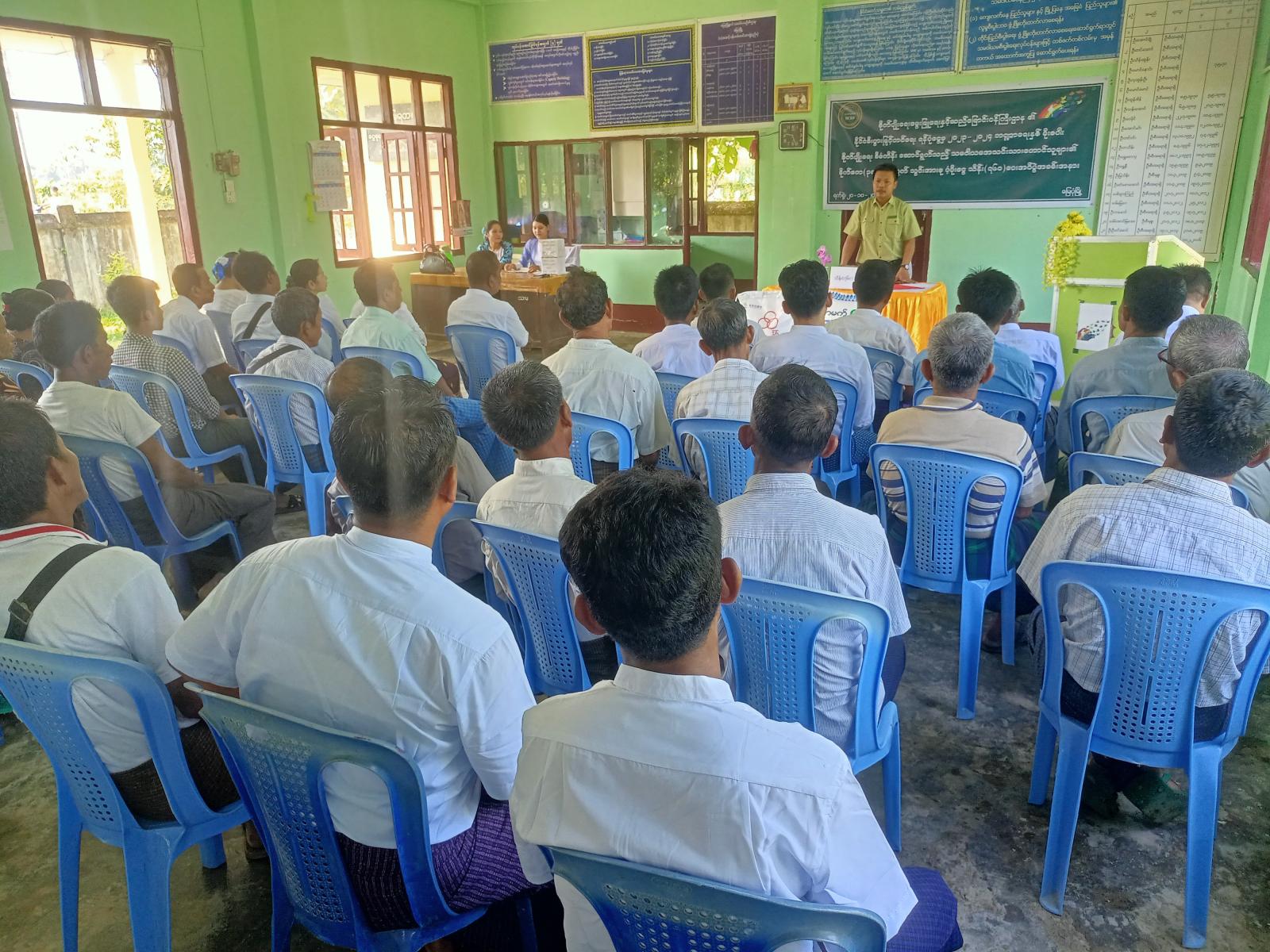 ရခိုင်ပြည်နယ်၊ မြောက်ဦးခရိုင်၊ မြေပုံမြို့နယ်၌ နိုင်ငံ့စီးပွားမြှင့်တင်ရေး ရန်ပုံငွေမှ မိုးစပါး စိုက်ပျိုးရေး စီမံကိန်းဆောင်ရွက်သည့် သမဝါယမအသင်းသားတောင်သူများ၏ စိုက်ဧက(၃၈၀)အတွက် သွင်းအားစု ပံ့ပိုးချေးငွေ ကျပ်သိန်း(၇၆၀)ပေးအပ်ပွဲအခမ်းအနားကို ယမန်နေ့နံနက်(၉)နာရီအချိန်က မြို့နယ် သမဝါယမရုံး ခန်းမ၌ ပြုလုပ်သည်။