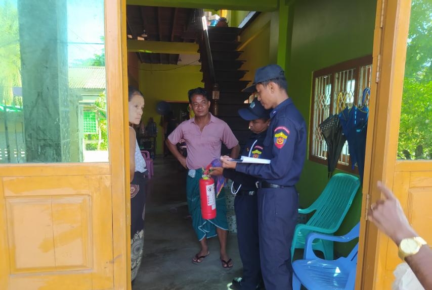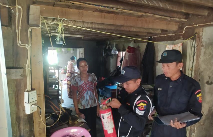 ထိုသို့ မီးဘေးအန္တရာယ်ကြိုတင်ကာကွယ်ရေးအ တွက် တစ်အိမ်တက်ဆင်းစစ်ဆေးရာတွင် မြို့နယ်မီးသတ်စခန်းမှ တပ်ကြပ်ကြီး အောင်မြတ်လင်းနှင့် တပ်ဖွဲ့ဝင်များက အရှေ့မြောက်ရပ်ကွက်အတွင်းရှိမိဘပြည်သူများအနေဖြင့် မီးဘေးအန္တရာယ်ကင်းဝေးစေရေးနှင့် မီးလောင် ကျွမ်းမှုမ ဖြစ်ပေါ်စေရေးတို့အတွက် မီးသတ်ဦးစီးဌာနမှထုတ်ပြန်ထားသော မီးဘေးလုံခြုံရေးဆိုင်ရာ ညွှန်ကြားချက်များဖြစ်သည့် မီးချိတ်၊ မီးကပ်၊ သဲအိတ်နှင့် မီးသတ် ဆေးဗူးစသော မီးဘေး ကာကွယ်ရေးပစ္စည်းများ အသင့်ထားရှိရေး၊ လောင်စာဆီများသို လှောင်ခြင်းမပြုရန်၊ တပ်ဆင် ထားသော ဟောင်းနွမ်းလျှပ် စစ်ဝါယာကြိုးများနှင့် ပျက်စီးနေသောလျှပ်စစ်ပစ္စည်းများ အသုံးမပြုကြရန်၊ မီးသွေးမီးဖိုဖြင့် ထမင်း၊ ဟင်းချက်ပြုတ်ပြီးပါက မီးကြွင်းမီးကျန်များအား စနစ်တကျ မီးငြှိမ်းသတ်ကြရန်စသည့် မီးဘေးအန္တရာယ် မဖြစ်ပေါ်စေရေးနှင့်ကြိုတင်ကာကွယ်ရေးအတွက် ဆောင်ရန်/ရှောင်ရန်အချက်များအား ကွင်းဆင်းစစ်ဆေးအသိပညာပေးဟောပြောခဲ့ကြောင်း သိရသည်။