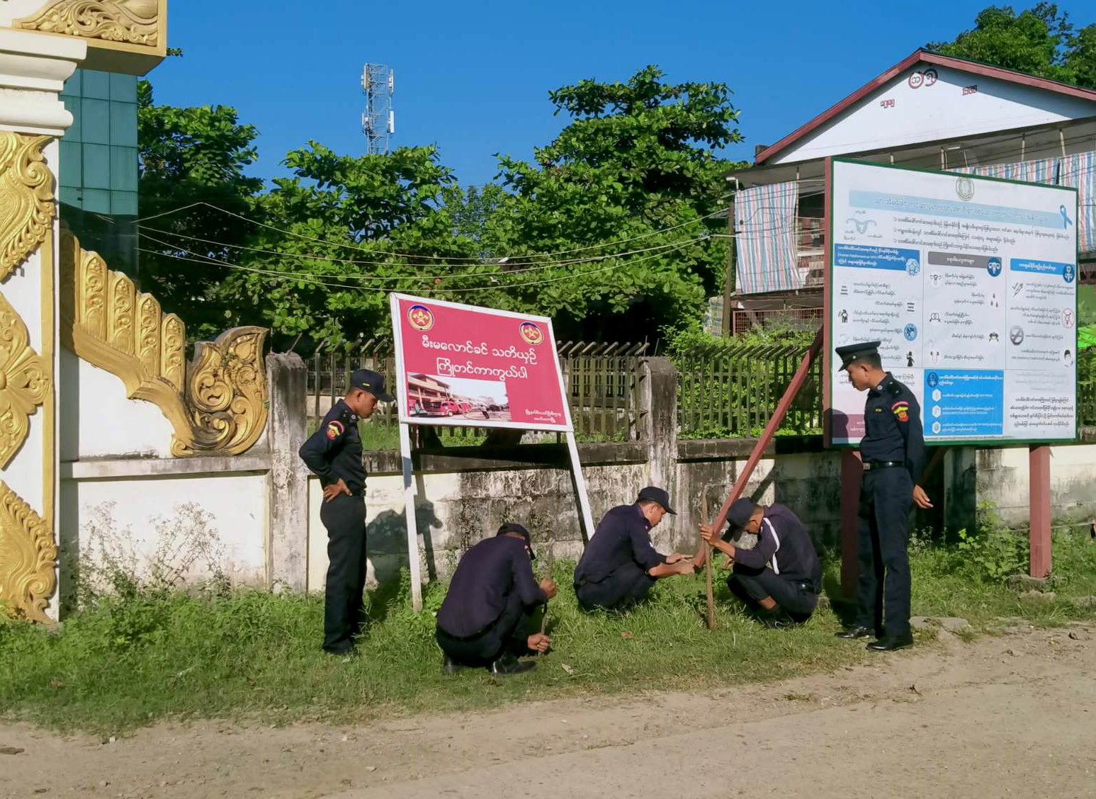 ရခိုင်ပြည်နယ်၊ မောင်တောခရိုင် ၊ မောင်တောမြို့၌ မီးဘေးအန္တရာယ်ကြိုတင်ကာကွယ်နိုင်ရေးအတွက် အသိပညာပေး ဗီနိုင်းပိုစတာများစိုက်ထူခြင်းကို ယမန်နေ့နံနက် ၁၀ နာရီအချိန် အများပြည်သူများ သိရှိ လိုက်နာနိုင်ရန်အတွက် လမ်းဆုံနေရာများတွင် စိုက်ထူခဲ့ကြသည်။