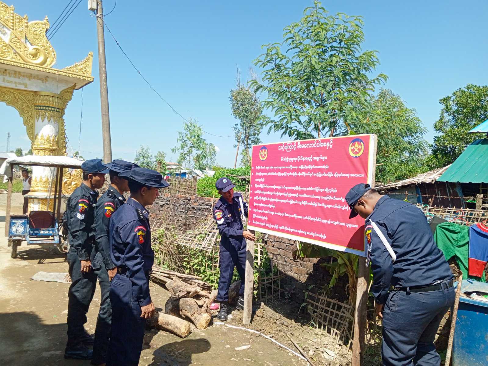 ထိုသို့ ဆောင်ရွက်ရာတွင် မြို့နယ်မီးသတ်ဦးစီးမှူး ဦးလူမော်ဦးဆောင်၍ မီးသတ် တပ်ဖွဲ့ဝင်များက မီးဘေးအန္တရာယ် ကြိုတင်ကာကွယ်နိုင်ရေးအတွက် အသိပညာပေး ဗီနိုင်းပိုစတာတွင်ပါဝင်သော “သင့်ကြောင့် မီးမလောင်ပါစေနှင့်”၊ မီးသုံးစွဲသူများမှလိုက်နာရမည့် အချက် (၇)ချက်ပါဝင်သော ဗီနိုင်း၊ ပိုစတာများကို ရွှေပါရမီ ယာယီနေရပ်စွန့်ခွာသူများစခန်းနှင့် စေတီတောင်အနောက်ဘက် ယာယီနေရပ်စွန့်ခွာသူများစခန်းများတွင် စိုက်ထူဆောင်ရွက်ခဲ့ကြကြောင်း သိရသည်။