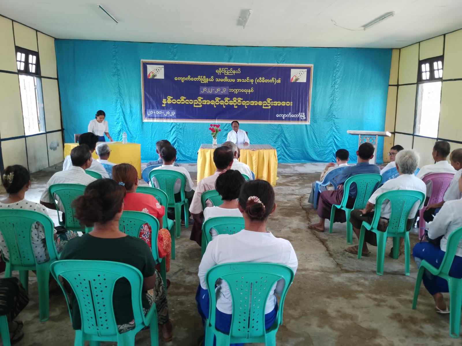 အစည်းအဝေးတွင် မြို့နယ်သမဝါအသင်းစု ဥက္ကဋ္ဌ ဦးဦးစောထွန်းမှ သဘာပတိအဖြစ် လည်းကောင်း၊ အတွင်းရေးမှူး ဦးအောင်ကျော်သိန်းတို့မှ အခမ်းနားမှူးအဖြစ် ဆောင်ရွက်ပြီး အစည်းအဝေးအား အစီစဉ်(၉)ရပ်ဖြင့် ဆောင်ရွက်ခဲ့ကာ သဘာပတိမှ အဖွင့်အမှာစကား ပြောကြားပြီးနောက် မြို့နယ်သမဝါယမဦးစီးဌာန ဦးစီးအရာရှိမှ လမ်းညွှန်အမှာစကား ပြောကြားခဲ့သည်။ ဆက်လက်ပြီး ဒါရိုက်တာအဖွဲ့၏ အစီရင်ခံစာနှင့် ဘဏ္ဍာရေးရှင်းတမ်းအား သမဝါယမအသင်းစု လီမိတက်မှ ဒုဥက္ကဋ္ဌ ဦးကျော်ဦးသာမှ ဖတ်ကြားတင်သွင်းပြီးအသင်း စာရင်းစစ်အဖွဲ့၏ အစီရင်ခံစာအား အသင်းစာရင်းစစ်အဖွဲ့ခေါင်းဆောင်မှ ဖတ်ကြားတင် ပြခဲ့သည်။ ထို့နောက်အခမ်းနားမှူးမှ ဒါရိုက်တာအဖွဲ့ အစီရင်ခံစာ၊ ဘဏ္ဍာရေးရှင်းတမ်းအား အသင်းဝင်ကိုယ်စားလှယ်များပြန်လည် ရှင်းလင်းဆွေးနွေးကပြီး ဒါရိုက်တာအဖွဲ့၏ အစီရင်ခံစာ၊ ဘဏ္ဍာရေးရှင်းတမ်းနှင့်ရှေးလုပ်ငန်းစဉ်များအား တက်ရောက်လာသော အသင်းဝင်များက တညီတညွတ်တည်းသ ဘောတူကြပြီး သဘာပတိမှ နိဂုံးချုပ်အမှာ စကားပြောကြားခဲ့ကြောင်း သိရှိရသည်။