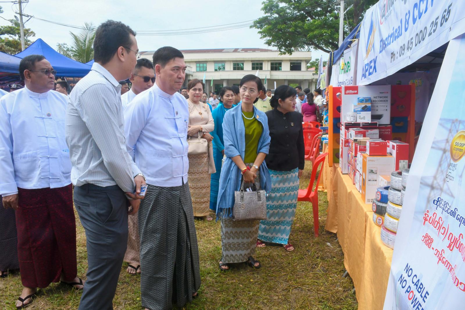 ယင်းနောက် ပြည်နယ်ဝန်ကြီးချုပ်နှင့် တာဝန်ရှိသူများသည် ခန်းမအတွင်းနှင့် ခိုင်သဇင်ပန်းခြံအတွင်း ခင်းကျင်းပြသထားသည့် စာအုပ်ပြခန်းများ၊ စာအုပ်အရောင်းဆိုင်များ၊ IT နှင့် သက်ဆိုင်သောပစ္စည်းများ၊ Branded အဝတ်အထည်များ၊ အလုပ်အကိုင်အခွင့်အလမ်းများ၊ ပညာရေး ဝန်ဆောင်မှုများ၊ စီးပွားရေးဆိုင်ရာပြခန်းများ၊ အစားအသောက်နှင့် လူသုံးကုန်ပစ္စည်းများအား ခင်းကျင်းပြသရောင်းချနေမှုကို လှည့်လည် ကြည့်ရှုအားပေးကြသည်။
