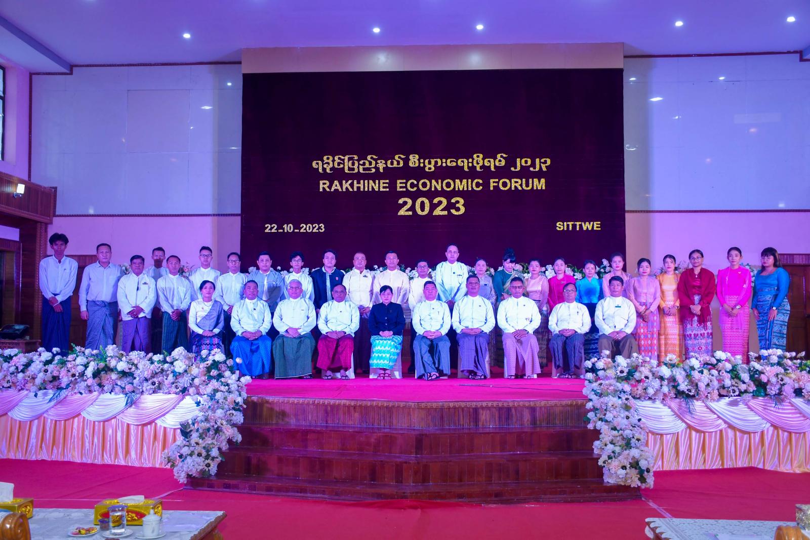 ရခိုင်ပြည်နယ်အစိုးရအဖွဲ့၏စီစဉ်မှုဖြင့် ပြည်နယ်အတွင်း ဒေသခံစွန့်ဦးတီထွင် စီးပွားရေးလုပ်ငန်းရှင်များ ပေါ်ထွက်လာစေရေးနှင့်ရခိုင်ပြည်နယ်၏ အနာဂတ်စီးပွားရေးဖွံ့ဖြိုးတိုးတက်မှု လုပ်ငန်းများနှင့်ပတ်သက်၍ ရည်ရွယ်ကျင်းပသည့် ရခိုင်ပြည်နယ်စီးပွားရေးဖိုရမ် (Rakhine Economic Forum 2023)ဖွင့်ပွဲကို ယနေ့နံနက်ပိုင်းက စစ်တွေမြို့၊ ခိုင်သဇင်ခန်းမ၌ကျင်းပရာ ရခိုင်ပြည်နယ်ဝန်ကြီးချုပ် ဦးထိန်လင်းနှင့်ဇနီး ဒေါ်ဆွေဆွေမြတ်၊ ပြည်နယ်တရားလွှတ်တော် တရားသူကြီးချုပ်၊ ပြည်နယ်အစိုးရအဖွဲ့ဝင်များ၊ ဌာနဆိုင်ရာများ၊ စီးပွားရေးလုပ်ငန်းရှင်များ၊ နယ်ပယ်အသီးသီးမှ ကျွမ်းကျင်ပညာရှင်များ၊ ရခိုင်လူငယ်များ၊ ကျောင်းသား၊ ကျောင်းသူများနှင့် ဖိတ်ကြားထားသူများ တက်ရောက်ကြသည်။