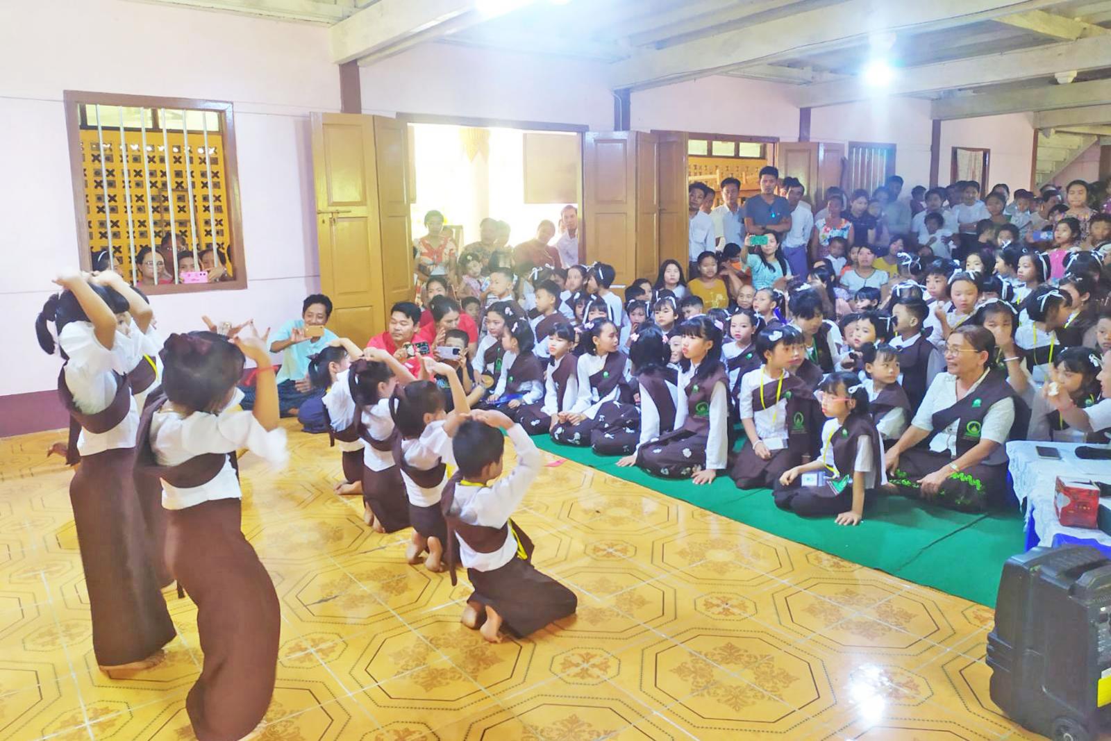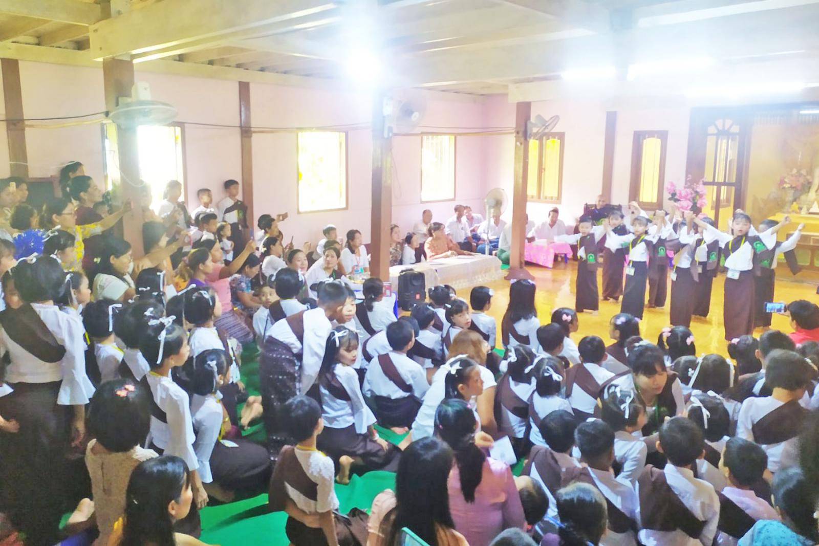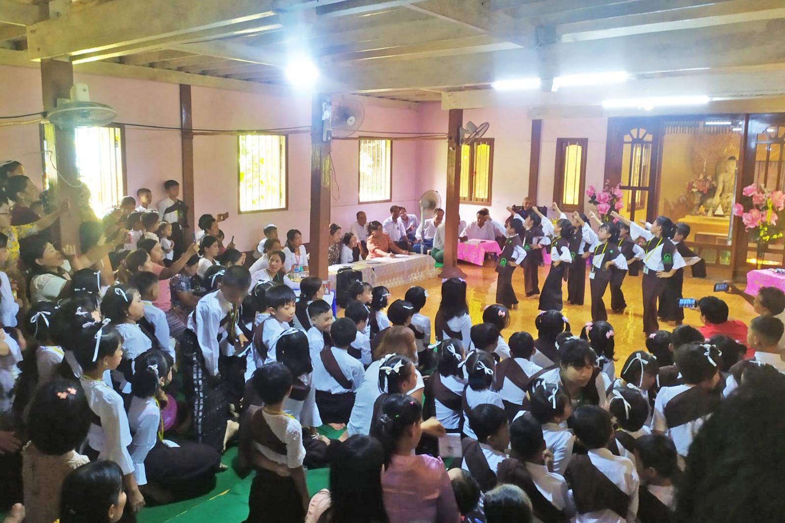 ရှေးဦးစွာ ဆရာတော် ဘဒ္ဒန္တတိက္ခိန္ဒြိယ(သာသနဓဇ ဓမ္မာစရိယ) အဖွင့်ဩဝါဒ မြွတ်ကြားပြီးအောင်မြေသာစည် ဓမ္မစကူးလ်ကော်မတီဥက္ကဋ္ဌ ဆရာကြီး ဦးသန်းစိန်မှ ပြိုင်ပွဲကျင်းပရခြင်းနှင့် ပတ်သက်၍ ရှင်းလင်းပြောကြားခဲ့သည်။ ဆက်လက်ပြီး ဓမ္မစကူးလ်ကျောင်းသား/သူများမှ ပြိုင်ပွဲဝင် တေးကဗျာများဖြင့် ကပြဖျော်ဖြေခဲ့ပြီးနောက် ဆရာတော် ဘဒ္ဒန္တတိက္ခိန္ဒြိယ(သာသနဓဇ ဓမ္မာစရိယ)က ဗုဒ္ဓသုတမေးခွန်းများမေး၍ ကျောင်းသား/သူများမှ ပြန်လည်ဖြေကြားခဲ့သည်။ ဆက်လက်၍ ပြိုင်ပွဲဝင် ဆုရရှိသော ကျောင်းသား/သူများအား ဆုများအသီးသီးချီးမြှင့်ပြီးနောက် ဆရာတော်နှင့် ဧည့်ပရိသတ်များက ဗုဒ္ဓသာသနံ စိရံတိဋ္ဌတု (၃)ကြိမ်ရွတ်ဆို၍ အခမ်းအနားကို ရုပ်သိမ်းခဲ့ကြကြောင်းသိရသည်။
