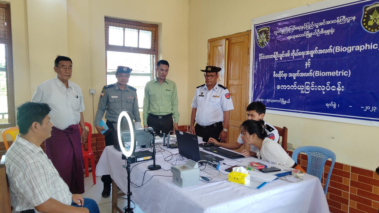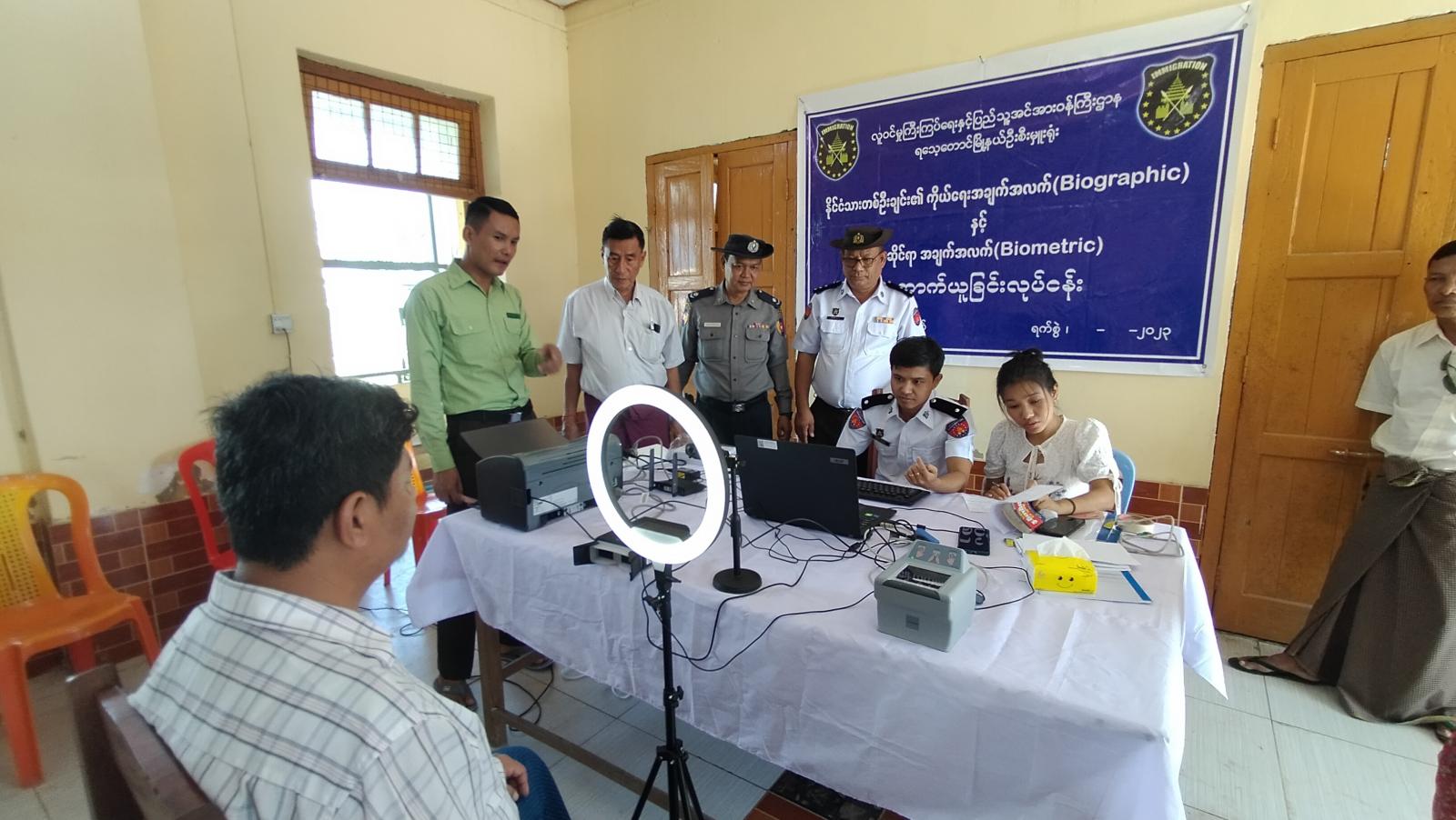 နိုင်ငံသားတစ်ဉီးခြင်း၏ အချက်အလက်(Biographic)နှင့်ဇီဝဆိုင်ရာအချက်အလက် (Biometric) ကောက်ယူခြင်းလုပ်ငန်းများအား ဒုတိယမြို့နယ်အုပ်ချုပ်ရေးမှူး ဦးကျော်လင်းအောင်နှင့်အဖွဲ့ဝင်များ၊ မြို့နယ်ဌာနဆိုင်ရာ တာဝန်ရှိသူများက နိုင်ငံသားတစ်ဦးခြင်း၏ အချက်အလက် (Biographic)နှင့် ဇီဝဆိုင်ရာအချက်အလက်(Biometric)ကောက်ယူခြင်းလုပ် ငန်းဆောင်ရွက်နေမှုအားကြည့်ရှုအားပေးခဲ့ကြောင်းသိရသည်။