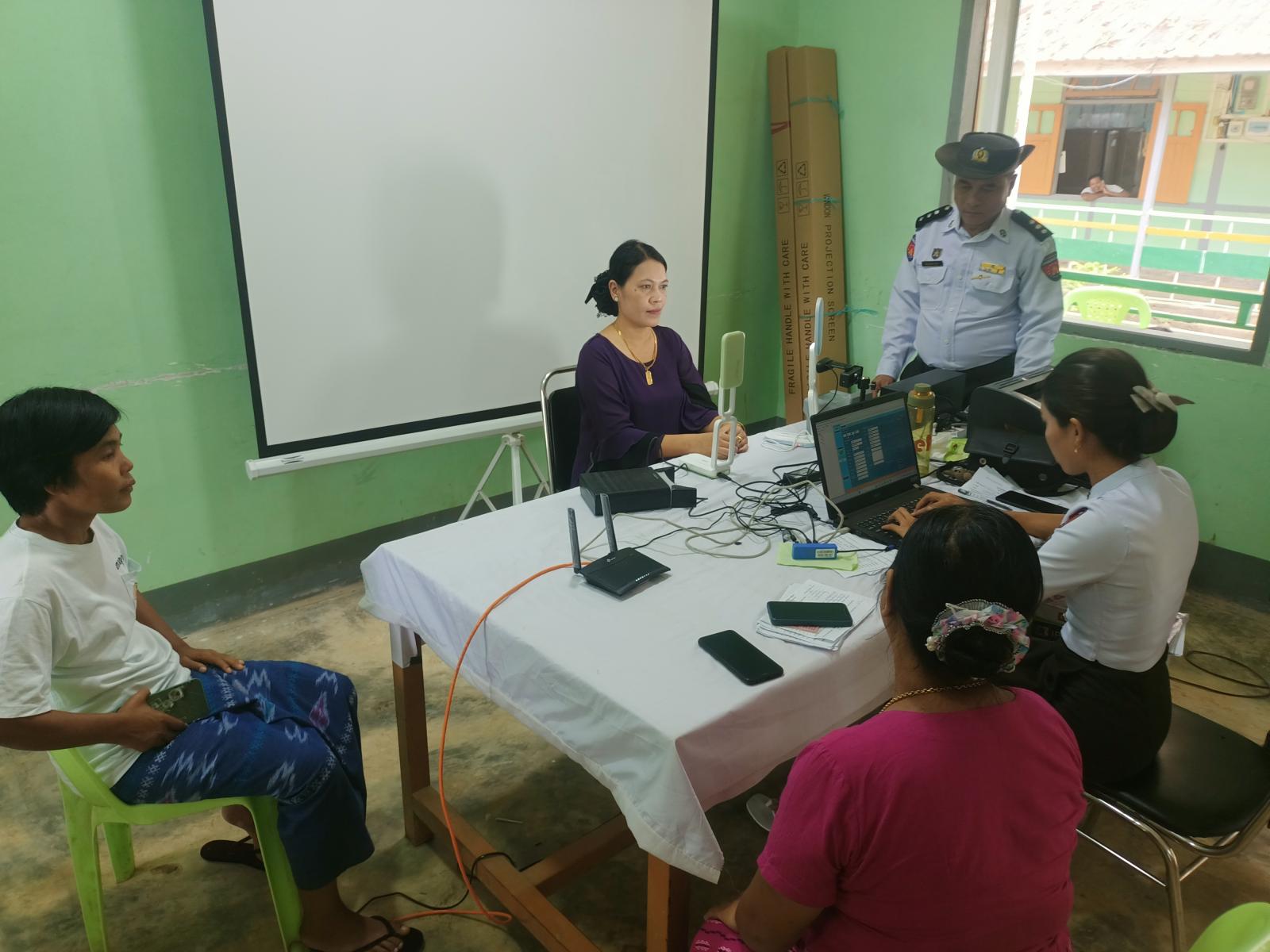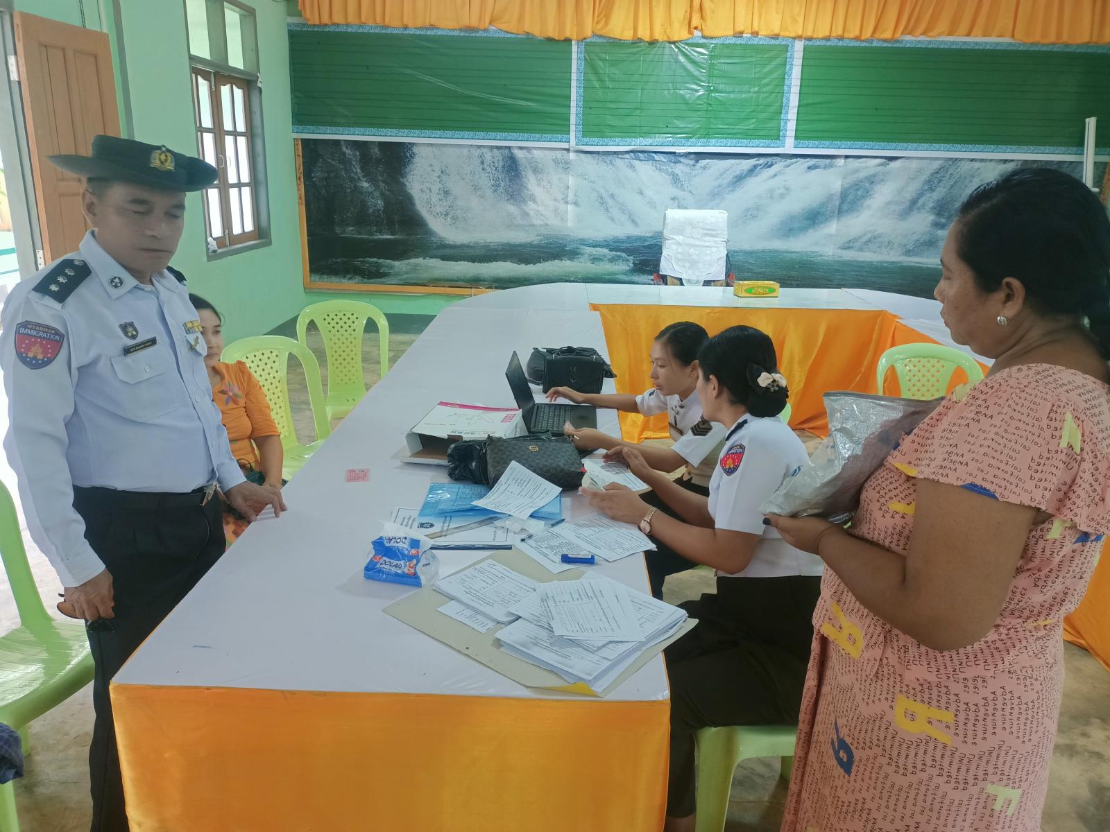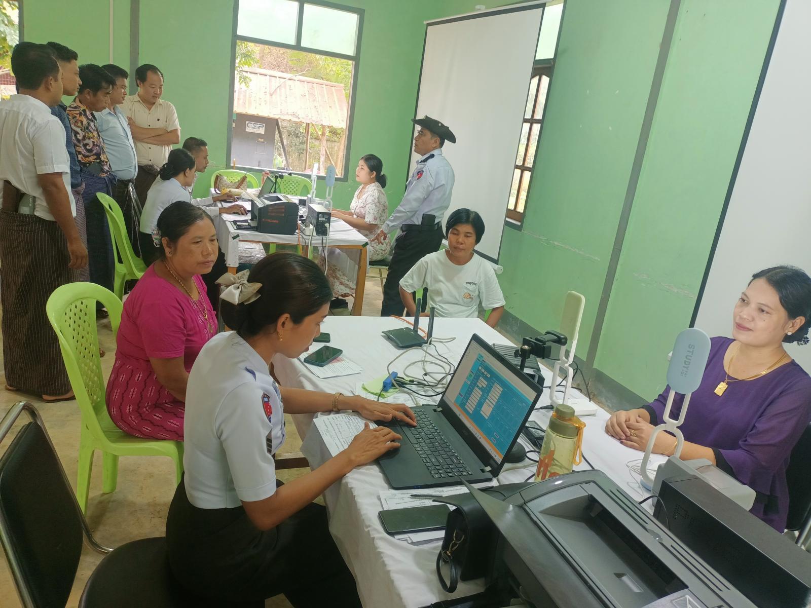 ထိုသို့ဆောင်ရွက်ရာတွင် လူဝင်မှုကြီးကြပ်ရေးနှင့်ပြည်သူ့အင်အားဦးစီးဌာန မြို့နယ်ဦးစီးမှူး ဦးအေးမောင်သိန်းဦးဆောင်၍ ဝန်ထမ်းများက အထွေထွေအုပ်အုပ်ရေးဦးစီးဌာန ဝန်ထမ်းများနှင့် မိသားစုဝင်များအား Biometric အချက်အလက်များ စတင်ကောက်ယူရာတွင် နိုင်ငံငံသားစိစစ်ရေးကတ်ပြားများ ယူဆောင်စေပြီး လူဝင်မှုကြီးကြပ်ရေးနှင့်ပြည်သူ့အင်အားဝန်ကြီးဌာန၊ Biometric Enrollment Application Form ပုံစံ(၁)ပါအချက်အလက်များ ဖြည့်သွင်းပြီး စာရင်ပေးသွင်းသူများအား QR ကုတ်များထုတ်ပေးလျက်ရှိပြီး အခြားဌာနဆိုင်ရာ ဝန်ထမ်းများနှင့်မိသားစုဝင်များအား ဆက်လက်ဆောင်ရွက်သွားမည်ဖြစ်ကြောင်း လူဝင်မှုကြီးကြပ်ရေးနှင့်ပြည်သူ့အင်အားဝန်ကြီးဌာန မြို့နယ်ဦးစီးမှူးရုံးမှ မြို့နယ်ဦးစီးမှူး ဦးအေးမောင်သိန်းထံမှ သိရသည်။
