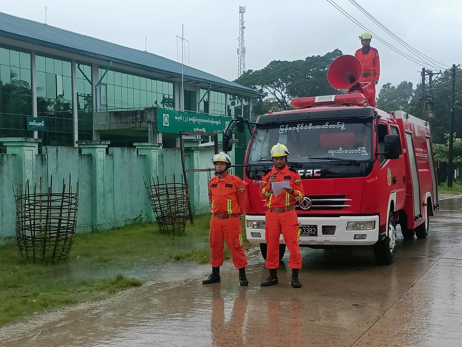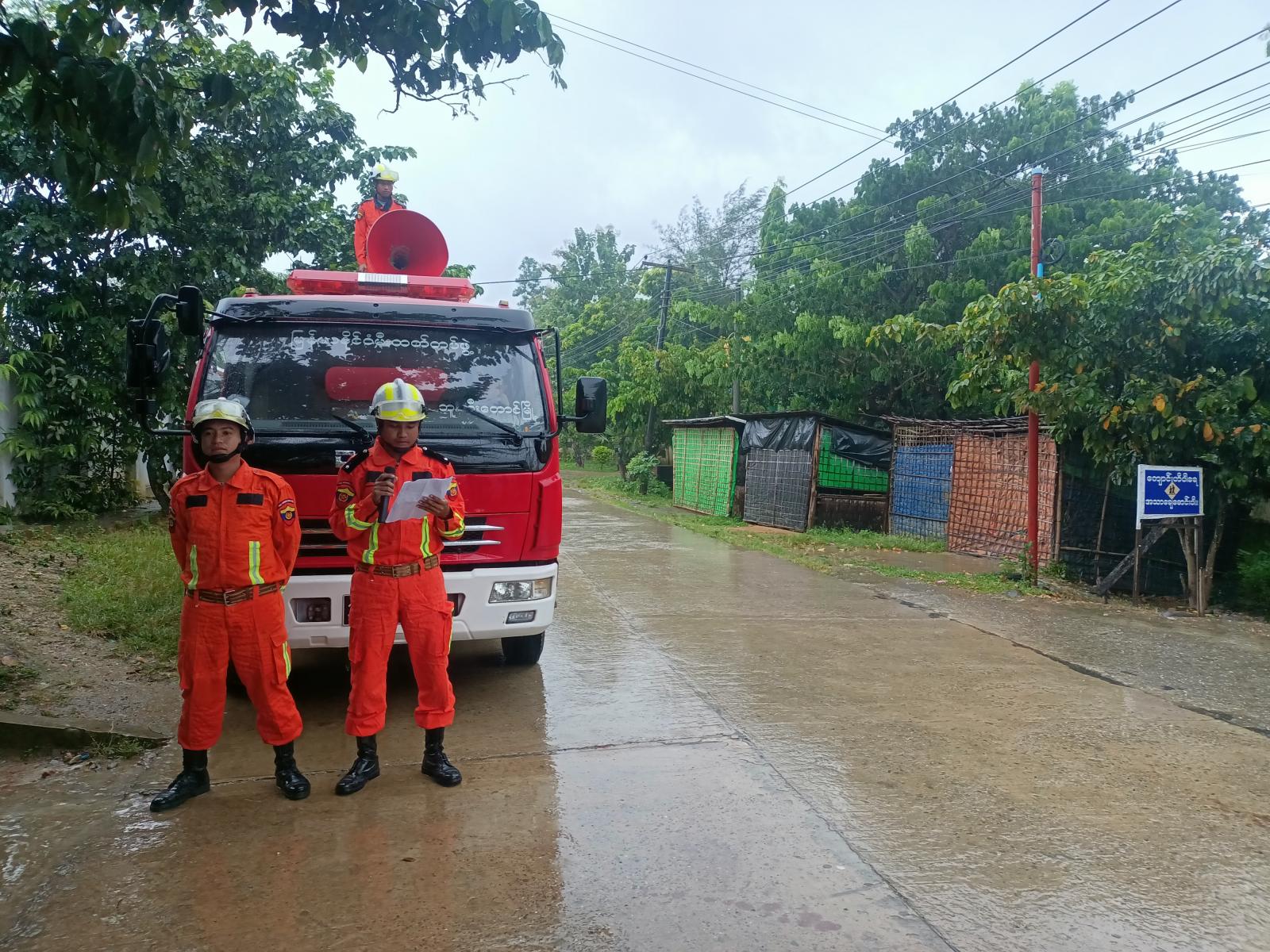 မြို့နယ်မီးသတ်ဦးစီးဌာနမှ လက်ထောက်မီးသတ်ဦးစီးမှူး ဦးစိုးနိုင်လင်းဦးဆောင်သည့် မီးသတ်တပ်ဖွဲ့ဝင်များသည် မိုးလေဝသနှင့်ဇလဗေဒညွှန်ကြားမှုဦးစီးဌာနမှ ထုတ်ပြန်ထားသည့် မုန်တိုင်းငယ်သတိပေးချက်များကို အသိပေးနှိုးဆော်ခဲ့ကြပြီး အဆိုပါမုန်တိုင်းငယ်သည် အားကောင်းသော ဆိုင်ကလုန်းမုန်တိုင်းအဖြစ်သို့ ရောက်ရှိနေသည့်အတွက် လေပြင်းတိုက်ခတ်ခြင်း၊ မိုးကြီးခြင်း၊ ရုတ်တရက် ရေကြီးခြင်းနှင့်အတူမြေပြိုခြင်းများ ဖြစ်ပေါ်နိုင်ကြောင်း၊ ရေကြီး၊ ရေလျှံမှုများဖြစ်ပေါ်နိုင်သောကြောင့် ကြိုတင်သတိပြုနေထိုင်ကြရန်လိုအပ်ကြောင်းနှင့် ပြည်တွင်းလေကြောင်းပျံသန်းရေးများနှင့် ရခိုင်ကမ်းရိုးတန်းတစ်လျှောက်၊ ကမ်းလွန်ပင်လယ်ပြင်တို့ရှိ ကမ်းနီး၊ ကမ်းဝေး ငါးဖမ်းရေယာဉ်များ၊ သင်္ဘောများအနေဖြင့်လည်း ကြိုတင်သတိပြုရှောင်ရှားနိုင်ရေး အသိပေးနှိုးဆော်ခဲ့ကြောင်းသိရသည်။