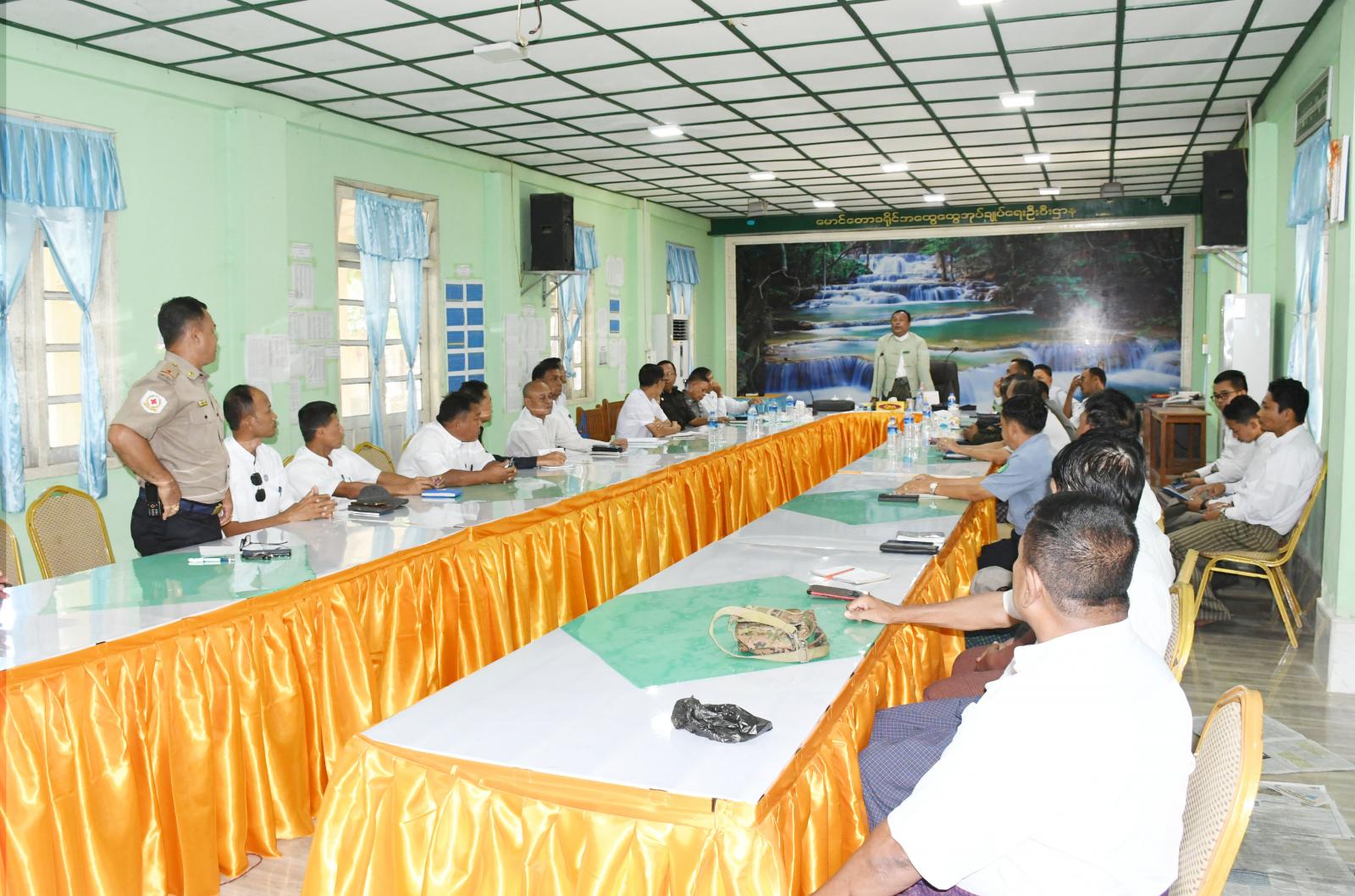 ရှေးဦးစွာ ခရိုင်စီမံအုပ်ချုပ်ရေးအဖွဲ့ဥက္ကဋ္ဌ ဦးနေဦးက သာသနာတော်နှစ် ၂၅၆၇ ခု၊ ကောဇာသက္ကရာဇ်-၁၃၈၅ခု၊ ခရစ်နှစ် ၂၀၂၃ ခုနှစ်၊ သီတင်းကျွတ်လပြည့်နေ့တွင် ပြုလုပ်မည့် ဂိုဏ်းပေါင်းစုံ သံဃာ့ပဝါရဏပွဲတော်ကြီးနှင့် ဆွမ်းဆန်စိမ်း လောင်းလှူပွဲကျင်းပပြုလုပ်မည့်ဖြစ်သဖြင့် ဌာနဆိုင်ရာများနှင့် စေတနာရှင်ပြည်သူများက ဆရာတော်အရှင်သူမြတ်များအားဆွမ်းဆန်စိမ်းလောင်းလှူနိုင်ရေးအတွက် ကြိုတင်စီမံဆောင်ရွက်ရမည့် ကိစ္စရပ်များကို စနစ်တကျပူးပေါင်း ဆောင်ရွက်စေလိုကြောင်း၊ ဆွမ်းဆန် စိမ်းလောင်းလှူနိုင်ရေးအတွက် လိုအပ်သော အခမ်းအနားပြင်ဆင်ရေး ကိစ္စရပ်များအား ဌာနဆိုင်ရာ တာဝန်ရှိသူများက ပူးပေါင်းဆောင်ရွက် ရမည်ဖြစ်ကြောင်း၊ သီတင်းကျွတ်ကာလအတွင်း ဘုရားစေတီပုထိုးများတွင် ဆီမီးများထွန်းညှိပူဇော်နိုင်ရေးအတွက် စသည့်တို့ကို ပြောကြားခဲ့သည်။ ထို့နောက် တက်ရောက်လာကြသော ခရိုင်/မြို့နယ်အဆင့် ဌာနဆိုင်ရာများ တာဝန်ရှိသူများက လုပ်ဆောင်မည့် လုပ်ငန်း တာဝန်များအား အသီးသီး တင်ပြကြရာ ဆွေးနွေးတင်ပြချက်များအပေါ် ခရိုင်စီမံအုပ်ချုပ်ရေးအဖွဲ့ ဥက္ကဋ္ဌမှ ပေါင်းစပ်ညှိနှိုင်းပေးခဲ့ကြောင်း သိရသည်။