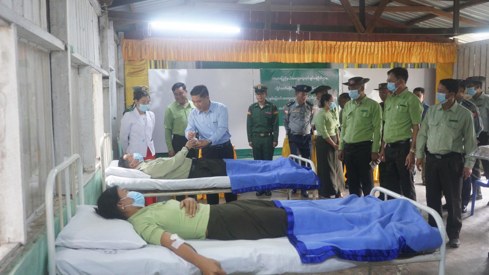 ဆက်လက်၍ ပြည်နယ်ဝန်ကြီးချုပ်၊ ပြည်နယ်အစိုးရအဖွဲ့ဝင်များ၊ ဒေသကွပ်ကဲရေးမှူးနှင့် တာဝန်ရှိသူများသည် တပ်မတော်ဆေးရုံသို့ သွားရောက်၍ လွိုင်ကော်ခရိုင်နှင့် ဒီးမော့ဆိုခရိုင် အထွေထွေအုပ်ချုပ်ရေးဦးစီးဌာနမှ ဝန်ထမ်းများက စုပေါင်းသွေးလှူဒါန်းနေမှုများကို ကြည့်ရှုအားပေးကာ သွေးလှူဒါန်းကြသည့် ဝန်ထမ်းများထံ အားဆေး၊ အချိုရည်၊ ကြက်ဥ၊ ဌက်ပျောသီး စသည့် အာဟာရဖြည့်စွက်စာများ ထောက်ပံ့ပေးအပ်ခဲ့သည်။