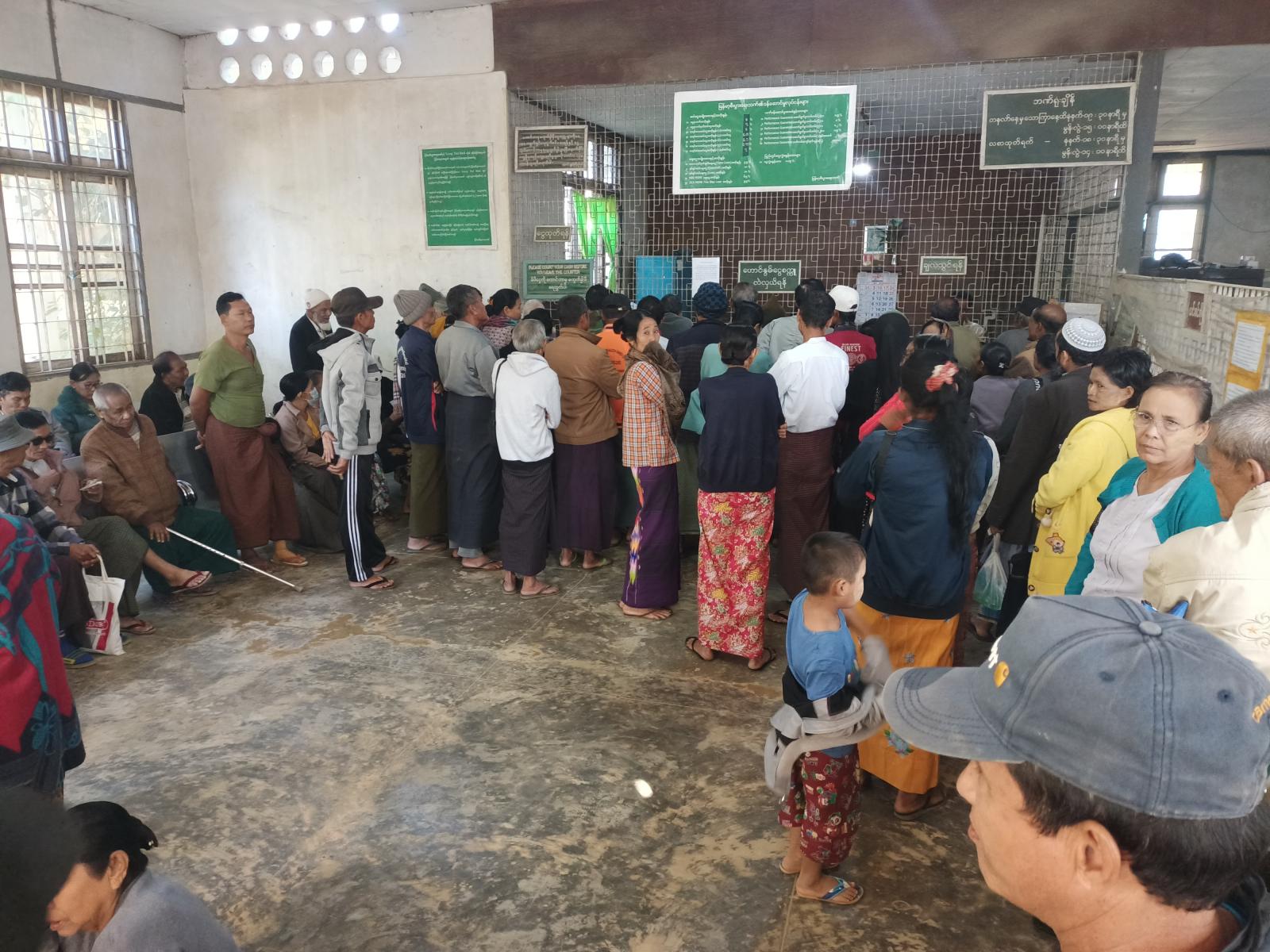 ရခိုင်ပြည်နယ်၊ မောင်တောခရိုင်၊ ဘူးသီးတောင်မြို့နယ်အတွင်းရှိ အငြိမ်းစားဝန်ထမ်းများ၏ ပင်စင်လစာများကို ယနေ့နံနက်ပိုင်းမှစ၍ မြန်မာ့ စီးပွားရေးဘဏ်တွင် ဘဏ်ဝန်ထမ်းများက ထုတ်ပေးလျက်ရှိကြောင်းသိရသည်။