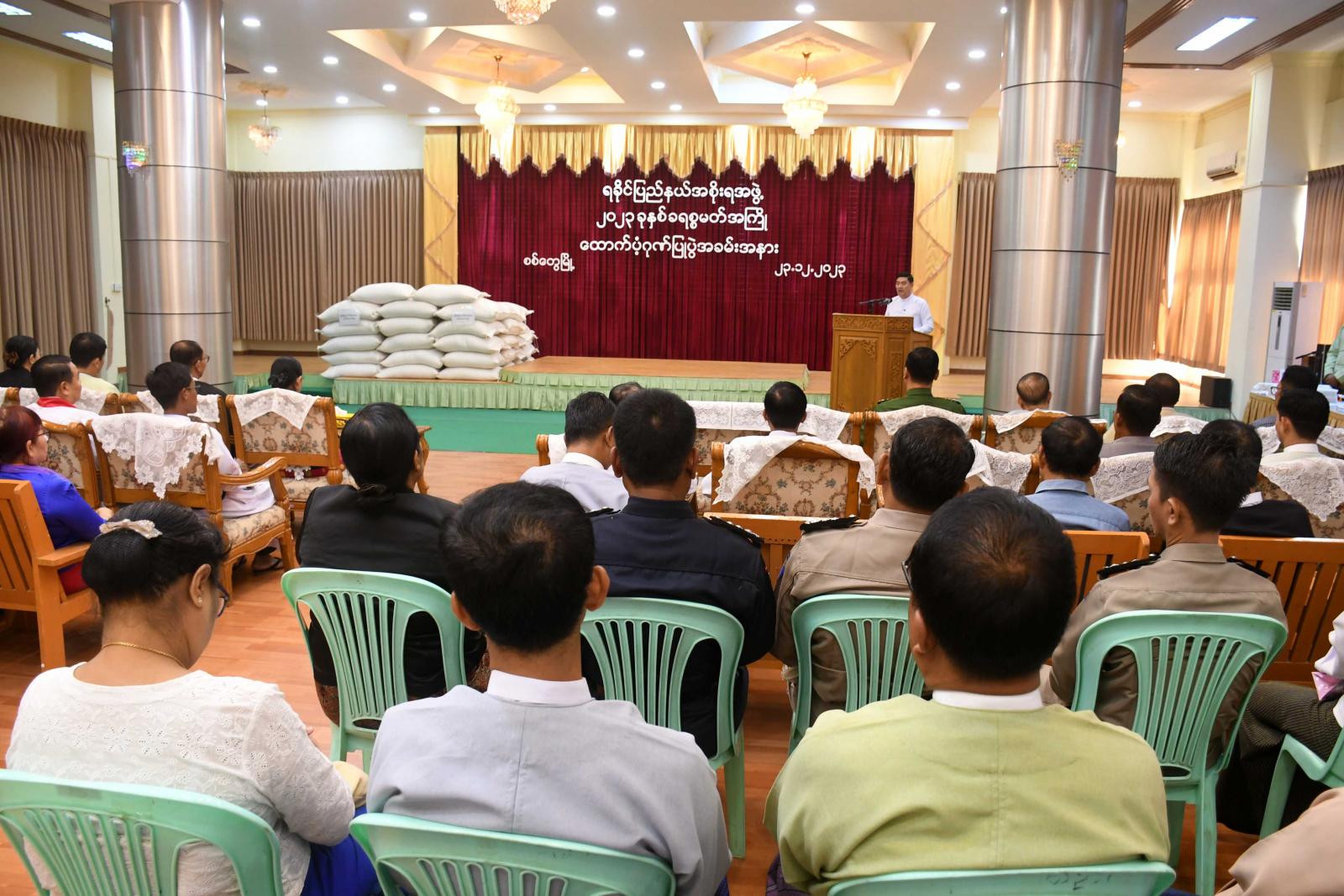 ဆက်လက်၍နှစ်ခြင်းခရစ်ယာန်အသင်းတော် သိက္ခာတော်ရဖာသာ ဦးအောင်လင်းက ခရစ္စမတ်ဆုတောင်း မေတ္တာပို့သပြီး ပြည်နယ်ဝန်ကြီးချုပ် ဦးထိန်လင်းက ခရစ်ယာန်အသင်းတော်များအား ထောက်ပံ့ငွေ နှင့်ဆန်များကို ပေးအပ်သည်။