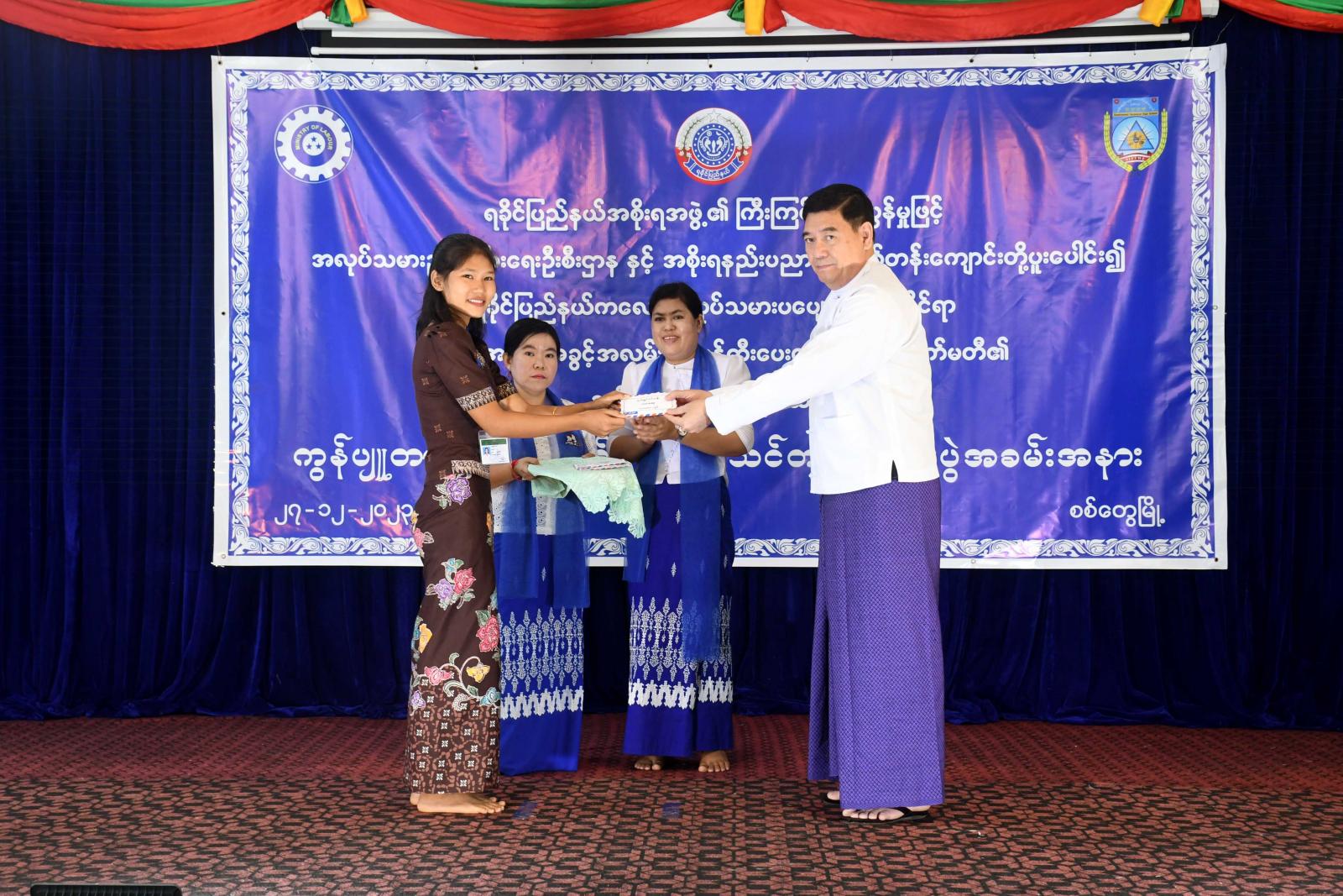 ဆက်လက်၍ ပြည်နယ်ဝန်ကြီးချုပ်က သင်တန်းတွင် ထူးချွန်ဆုရရှိသော သင်တန်းသား၊ သင်တန်းသူများအား ဂုဏ်ပြုဆုငွေများပေးအပ်ချီးမြှင့်ပြီး ပြည်နယ်လမ်းပန်းဆက်သွယ်ရေးဝန်ကြီးက သင်တန်းဆရာမများအား ဂုဏ်ပြုလက်ဆောင်များပေးအပ်သည်။ ယင်းနောက် အစိုးရနည်းပညာအထက်တန်းကျောင်း၊ ကျောင်းအုပ်ဆရာကြီးက သင်တန်းသား၊ သင်တန်းသူများအား သင်တန်းဆင်းလက်မှတ်များပေးအပ်ချီးမြှင့်ပြီး သင်တန်းသူတစ်ဦးက ကျေးဇူးတင်စကားပြန်လည် ပြောကြားသည်။ ထို့နောက်ပြည်နယ်ဝန်ကြီးချုပ်နှင့် ပြည်နယ်အစိုးရအဖွဲ့ဝင်များက သင်တန်းသား/သင်တန်းသူများကို ရင်းရင်းနှီးနှီးတွေ့ဆုံ နှုတ်ဆက်ခဲ့ကြောင်း သိရသည်။