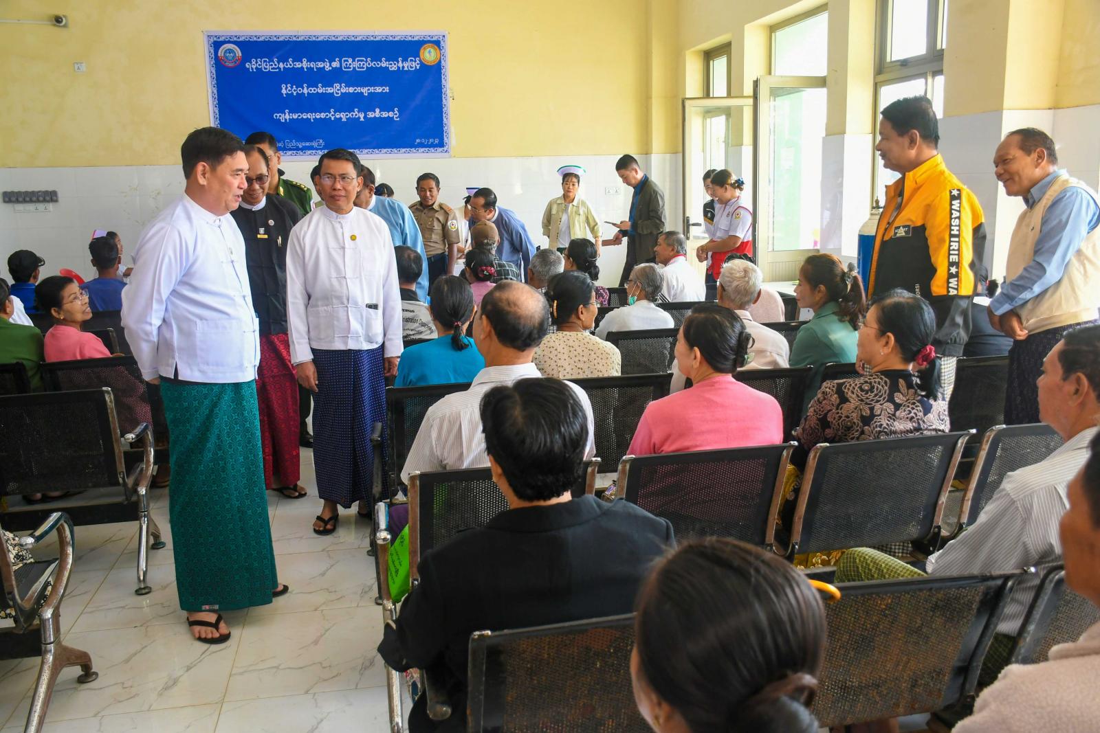 နိုင်ငံ့ဝန်ထမ်းအငြိမ်းစားများအား ကျန်းမာရေးစစ်ဆေးမှုများပြုလုပ်ရာတွင် ပြည်နယ်ကျန်းမာရေးဦးစီးဌာန၊ ပြည်နယ်ဦးစီးမှူး ဒေါက်တာ ကြည်လွင်နှင့် တာဝန်ရှိသူများက အနီးကပ်ကြီးကြပ်ကာ သမားတော်ကြီးများ၊ အထူးကုဆရာဝန်ကြီးများနှင့် ကျန်းမာရေးဝန်ထမ်းများက သွေးပေါင်ချိန်တိုင်း တာပေးခြင်း၊ သွေးအတွင်း အောက်ဆီဂျင်ပါဝင်မှုတိုင်းတာပေးခြင်း၊ ဆီးချို၊ သွေးချိုစစ်ဆေးပေးခြင်း၊ နှလုံးရောဂါစစ်ဆေးခြင်း၊ ရင်ခေါင်း ရောဂါစစ်ဆေးခြင်းနှင့် ultrasound ရိုက်စစ်ဆေးခြင်းများကို ဆောင်ရွက်ပေးခဲ့ကြကြောင်းသိရသည်။
