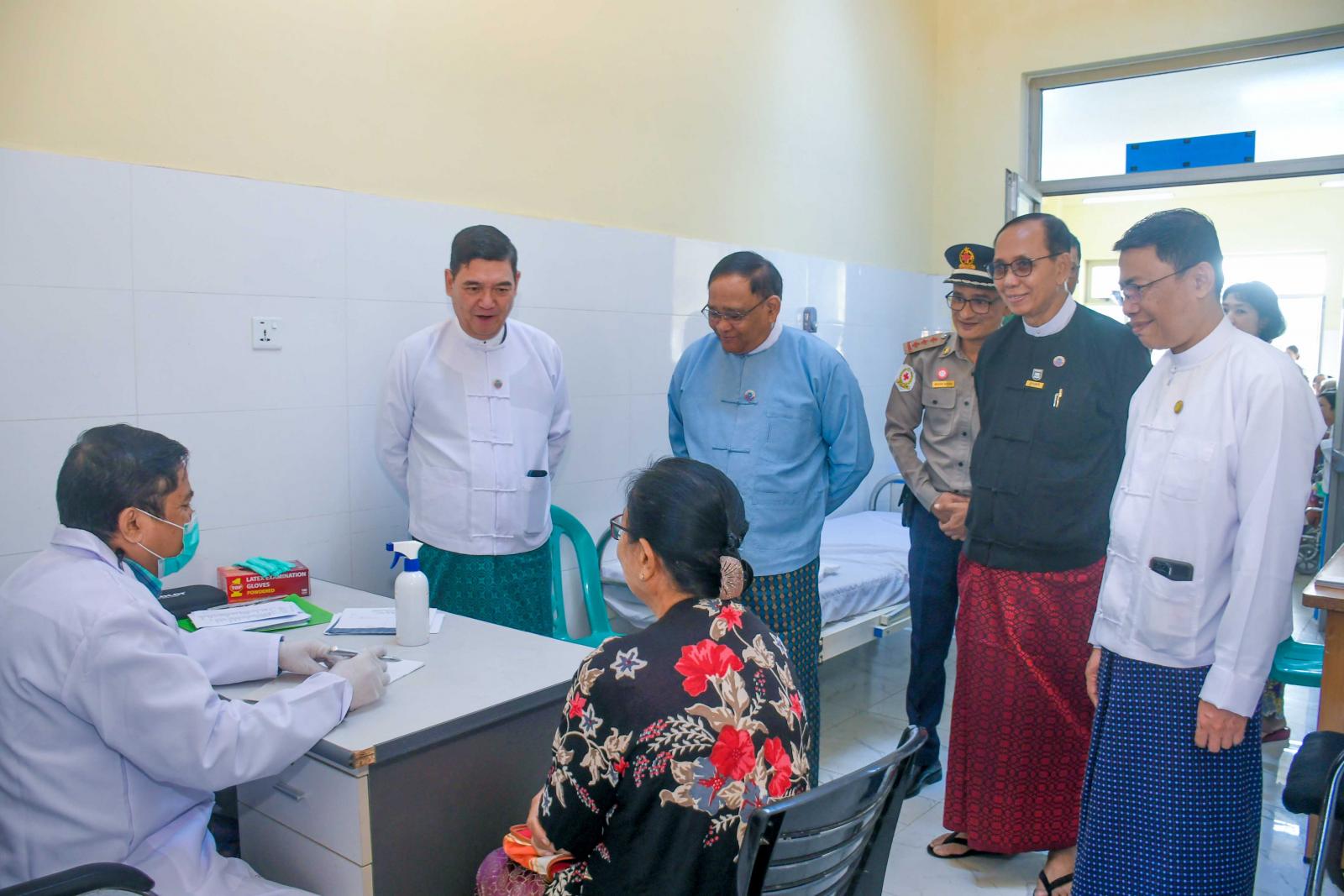 ဦးစွာ ပြည်နယ်ဝန်ကြီးချုပ်နှင့်အဖွဲ့သည် အထွေထွေရောဂါကုဆေးရုံကြီး၌ ကျန်းမာရေးစောင့် ရှောက်မှုခံယူရန် ရောက်ရှိလာကြသော နိုင်ငံ့ဝန်ထမ်းအငြိမ်းစားများအား ရင်းရင်းနှီးနှီးတွေ့ဆုံအား ပေးစကားပြောကြားကြ သည်။ ဆက်လက်၍ ပြည်နယ်ဝန်ကြီးချုပ်နှင့်အဖွဲ့သည် ခုတင် ၅၀၀ ဆံ့အထွေ ထွေရောဂါကုဆေးရုံကြီးမှ သမားတော်ကြီးများ၊ အထူးကုဆရာဝန်ကြီးများ၊ ကျန်းမာရေးဝန်ထမ်းများကနိုင်ငံ့ဝန်ထမ်းအငြိမ်းစားများအား လိုအပ်သော ကျန်းမာရေးစစ်ဆေးမှုများ ပြုလုပ်နေမှုကို လှည့်လည်ကြည့်ရှုအားပေးကြသည်။