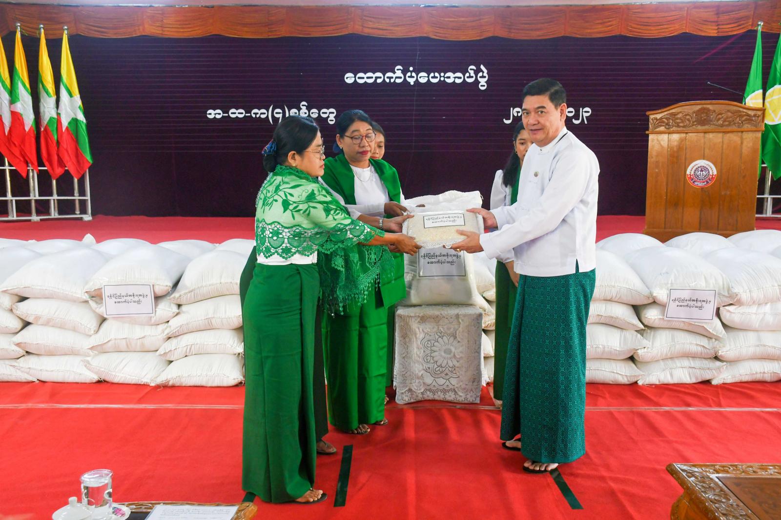 ဆက်လက်၍ ပြည်နယ်ဝန်ကြီးချုပ်၊ ပြည်နယ်တရားလွှတ်တော် တရားသူကြီးချုပ်နှင့် ပြည်နယ်ဝန်ကြီးများက ဆရာ၊ ဆရာမများနှင့် ပညာရေးဝန်ထမ်းများအတွက် ထောက်ပံ့ပစ္စည်းများကို ပေးအပ်ကြရာ ဆရာ၊ ဆရာမများ နှင့်ဝန်ထမ်းများက လက်ခံရယူပြီး ဆရာတစ်ဦးက ကျေးဇူးတင်စကား ပြန်လည်ပြောကြားသည်။