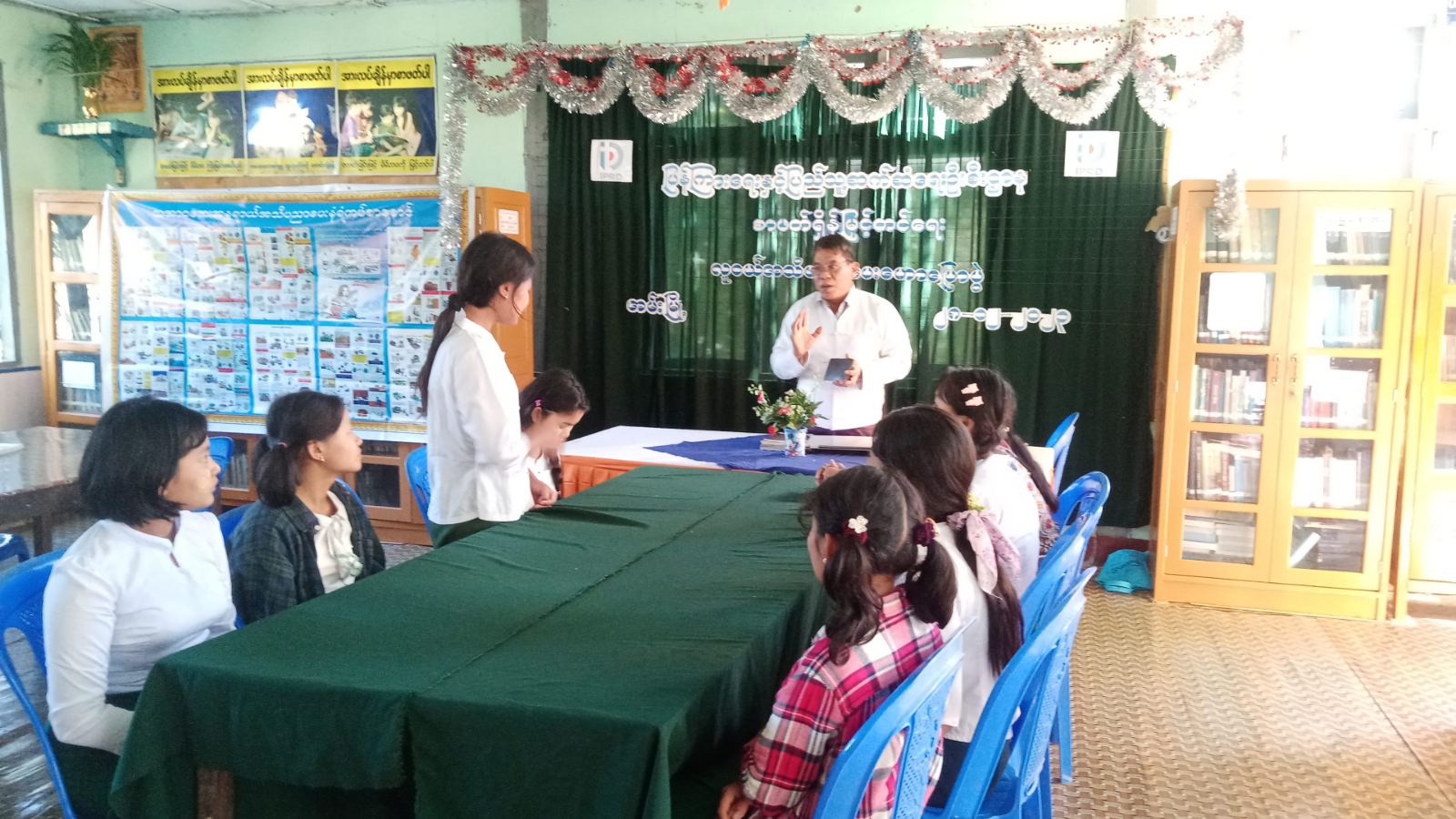 ရှေးဦးစွာ မြို့နယ်ပြန်ကြားရေးနှင့်ပြည်သူ့ဆက်ဆံရေးဦးစီးဌာနမှ ဦးစီးအရာရှိ ဦးစန်းဝင်းက စာပေမြတ်နိုးသူ Book Club အသင်းဝင်ကျောင်းသား၊ ကျောင်းသူလူငယ်များအား လူငယ်များ၏ ကာယ၊ ဉာဏ၊ စာရိတ္တများ ဘက်စုံဖွံ့ဖြိုးတိုးတက်စေရန် အပတ်စဥ် စာဖတ်ရှိန်မြှင့်တင်ရေးအတွက် စာဖတ်ဝိုင်းများ နံရံကပ်စာစောင်ပြပွဲများ လူငယ်အသိပညာပေး ဟောပြောပွဲများ အခြေခံပညာကျောင်းများ၌ ပြောတတ်ဆိုတတ် ပြောရဲဆိုရဲရှိစေရန် လူငယ်စကားဝိုင်းများကို ကျင်းပပေးလျက်ရှိပါကြောင်း ပြောကြားပြီး စာပေဆိုင်ရာအကြောင်းအရာများ စင်ကာပူသမ္မတလီကွန်ယု၏ စင်ကာပူနိုင်အားဖွံ့ဖြိုးတိုးတက်စေရန် ဆောင်ရွက်ခဲ့မှုများနှင့် ကမ္ဘာကျော် သန်းကြွယ်သူဌေးကြီး လီကာရှင်း၏ မှတ်မှတ်သားသားစကားများ ကောက်နှုတ်ချက်များအား လူငယ်များအတုယူ မှတ်သားလိုက်နာစေရန် ရှင်းလင်းပြောကြားခဲ့ရာ မခင်ခင်စိုး၊ မသန်းရင်၊ မဥမ္မာထွေး၊ မမာမာစိုးတို့က သိရှိလိုသည်များအား မေးမြန်းကြရာ ဦးစီးအရာရှိ ဦးစန်းဝင်းက ရှင်းလင်းပြောကြားခဲ့သည်။