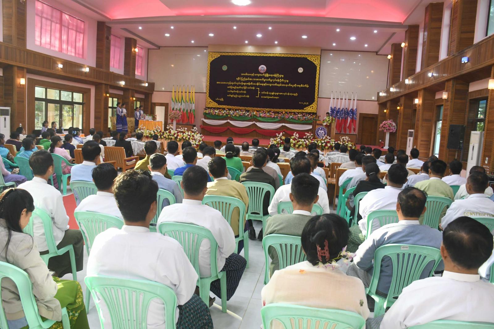 ရခိုင်ပြည်နယ် အသေးစားစက်မှုလက်မှု လုပ်ငန်းဦးစီးဌာန ၂၀၂၃-၂၀၂၄ ဘဏ္ဍာနှစ် အသေးစား ကုန်ထုတ်လုပ်ငန်းများ ဖန်တီးပေးနိုင်ရေနှင့် ကျေးလက်နေမိသားစု ဝင်ငွေတိုးတက်ရေးစီမံကိန်း အစီအစဉ်ဖြင့်ဆောင်ရွက်သည့် ဒေသဖွံ့ဖြိုးရေးလုပ်ငန်းသုံး ပစ္စည်းများပေးအပ်ပွဲအခမ်းအနားကို ယမန်နေ့နံနက်ပိုင်းတွင် စစ်တွေမြို့ရှိ ခိုင်သဇင်ခန်းမ၌ ကျင်းပသည်။