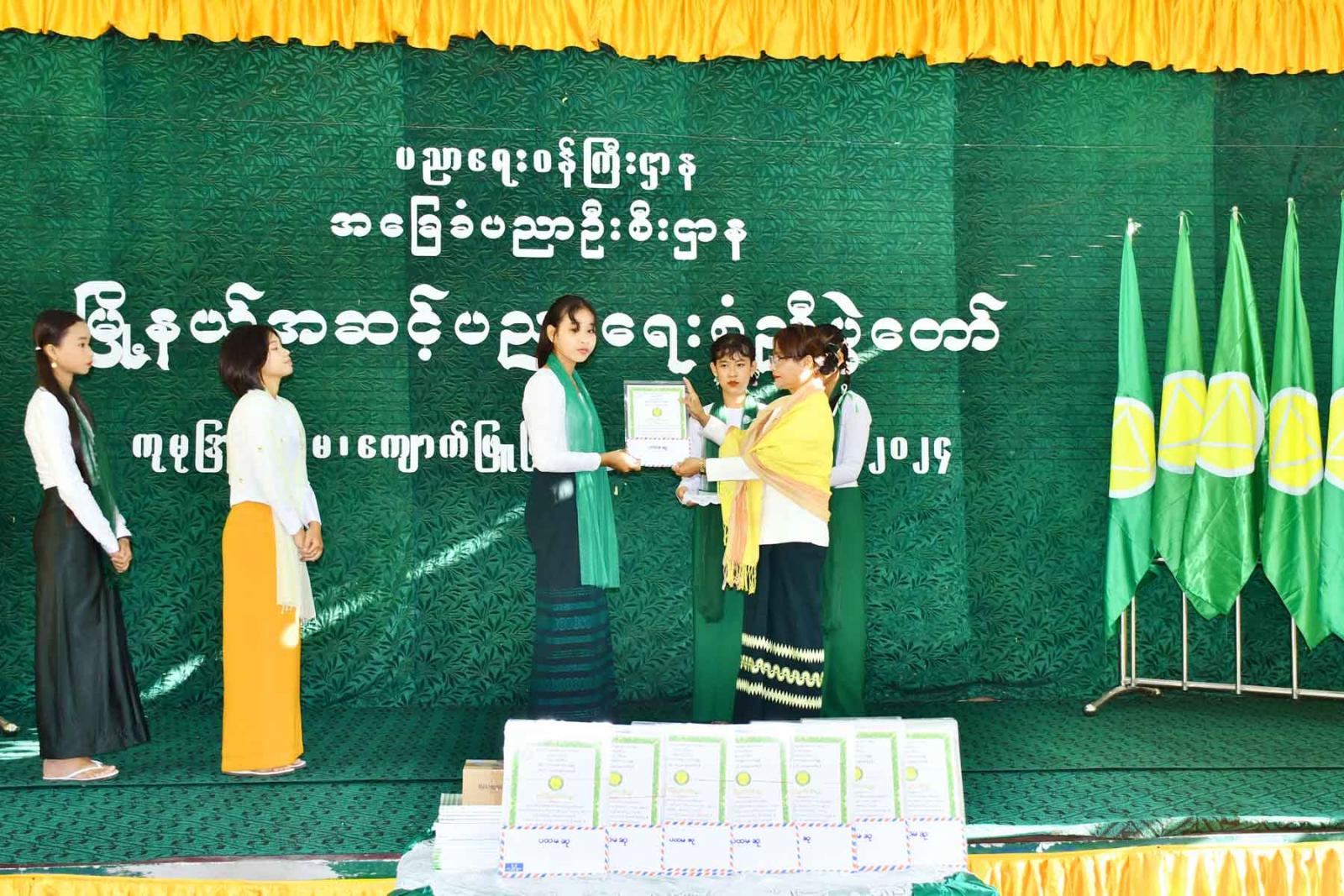 ရခိုင်ပြည်နယ်၊ ကျောက်ဖြူခရိုင်၊ ကျောက်ဖြူမြို့နယ်ပညာရေးမှူးရုံး ကုမုဒြာခန်းမတွင် ၂၀၂၃-၂၀၂၄ ပညာသင်နှစ် မြို့နယ်အဆင့်ပညာရေးစုံညီပွဲတော်ကို ယမန်နေ့နံနက် ၉ နာရီအချိန်က အဆိုပါခန်းမ၌ ကျင်းပပြုလုပ်ရာ ခရိုင်ပညာရေးမှူး၊ မြို့နယ်ပညာရေးမှူး၊ ကျောင်းအုပ်ကြီးများ၊ ဆုရကျောင်းသား/သူများနှင့် မိဘအုပ်ထိန်းသူများ တက်ရောက်ကြသည်။