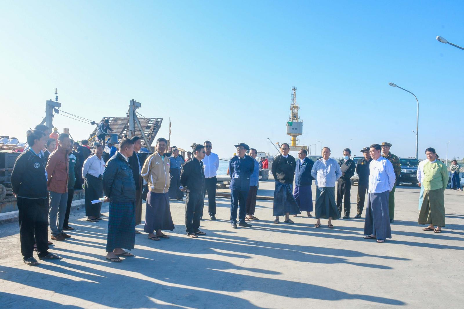 အမျိုးသားသဘာဝဘေးအန္တရာယ်ဆိုင်ရာစီမံခန့်ခွဲမှုကော်မတီ၏ လမ်းညွှန်မှုအရ ပို့ဆောင်ဆက်သွယ်ရေး လုပ်ငန်းကော်မတီ၏ စီစဉ်ကြီးကြပ်မှုဖြင့် ရခိုင်ပြည်နယ်သို့ ပြန်လည်ထူထောင်ရေးပစ္စည်းများကို ပို့ဆောင်ပေးလျက်ရှိရာ MV Moon Light သင်္ဘောဖြင့် စစ်တွေမြို့သို့ရောက်ရှိလာသည့် ပစ္စည်းများအား မြန်မာ့ဆိပ်ကမ်း အာဏာပိုင် စစ်တွေဖောင်တော်ကြီးဆိပ်ကမ်း၌ ကုန်တင်ကုန်ချပြုလုပ်နေမှုကို ယနေ့နံနက်ပိုင်းက ရခိုင်ပြည်နယ်ဝန်ကြီးချုပ် ဦးထိန်လင်းနှင့်ပြည်နယ်အစိုးရအဖွဲ့ဝင်များ၊ ဌာနဆိုင်ရာတာဝန်ရှိသူများက သွားရောက်ကြည့်ရှုစစ်ဆေးကြသည်။