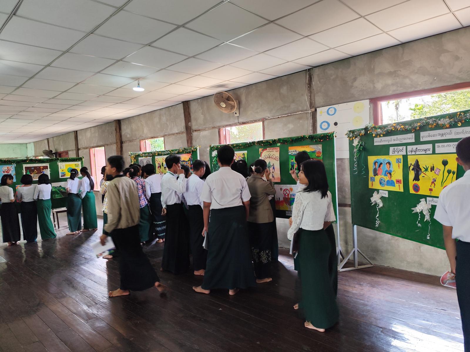 အဆိုပါ ပန်းချီပြပွဲတွင် အခြေခံပညာအလယ်တန်းအဆင့် ပန်းချီပြိုင်ပွဲဝင်ကျောင်းသား၊ကျောင်းသူ (၄၃)ဦးနှင့် အထက်တန်းအဆင့် ပြိုင်ပွဲဝင် (၁၇) ဦးတို့၏ ပြိုင်ပွဲဝင် ပန်းချီကားများနှင့် ဆုရရှိကြသည့် ပန်းချီကားများကို ပြသထားရာ ခရိုင်စီမံအုပ်ချုပ်ရေးအဖွဲ့ဥက္ကဋ္ဌ ဦးကျော်မြင့်လှိုင်နှင့် အဖွဲ့ဝင်များ၊ ခရိုင်ပညာရေးမှူး ဒေါ်တင်တင်ဦးနှင့်ပညာရေးဌာနမှ တာဝန်ရှိသူများ၊ ကျောင်းသားက စိတ်ဝင်စားစွာ လာရောက်ကြည့်ရှုခဲ့ကြကြောင်း သိရသည်။