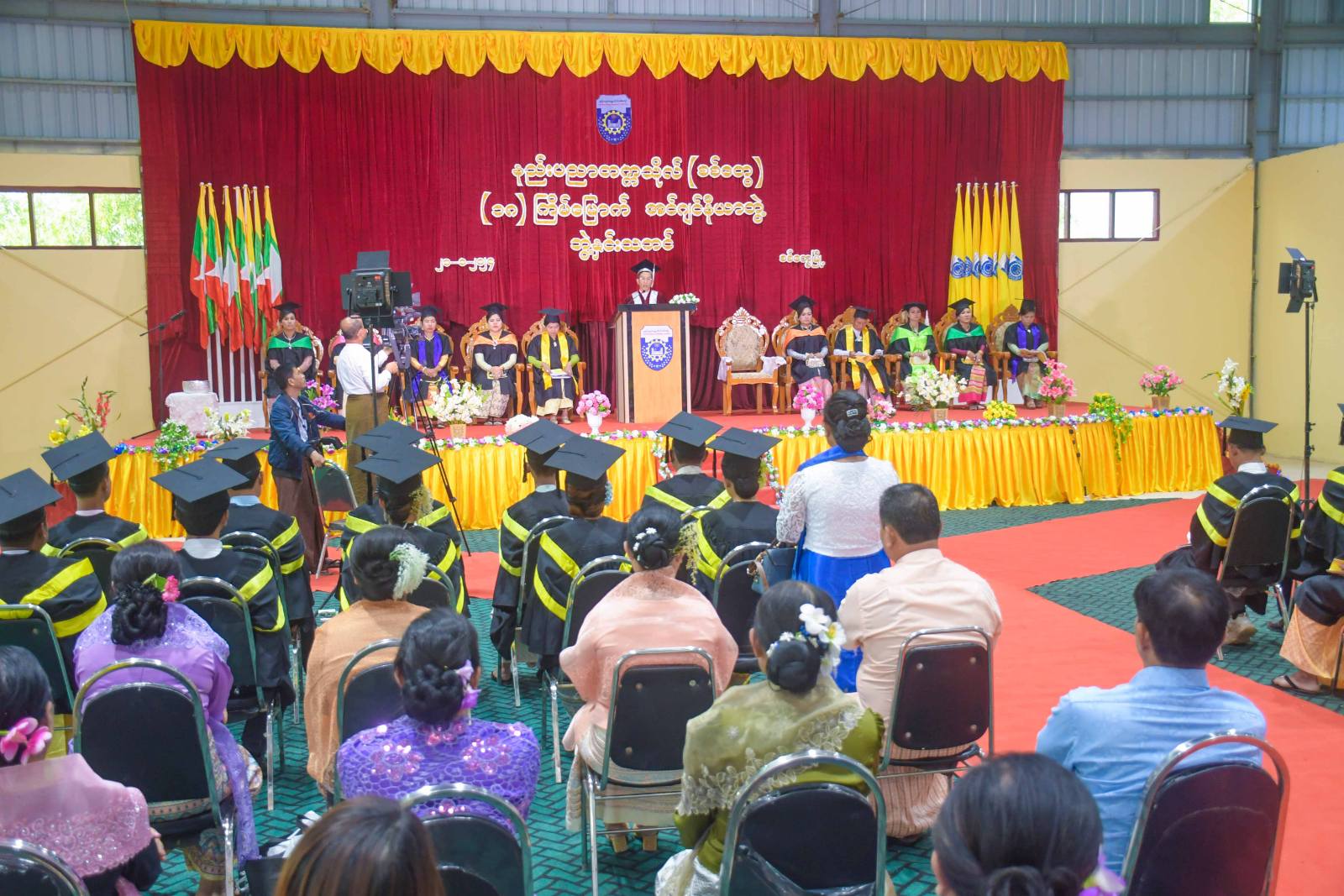 ထို့နောက်နည်းပညာတက္ကသိုလ် ဒုတိယပါမောက္ခချုပ် ဒေါက်တာကျော်လှိုင်ဦးက ဘွဲ့နှင်းသဘင်အခမ်းအနားကျင်းပကြောင်းကြေညာပြီး ဘွဲ့ယူကြမည့်မောင်မယ်များ ကတိပြုကြသည်။