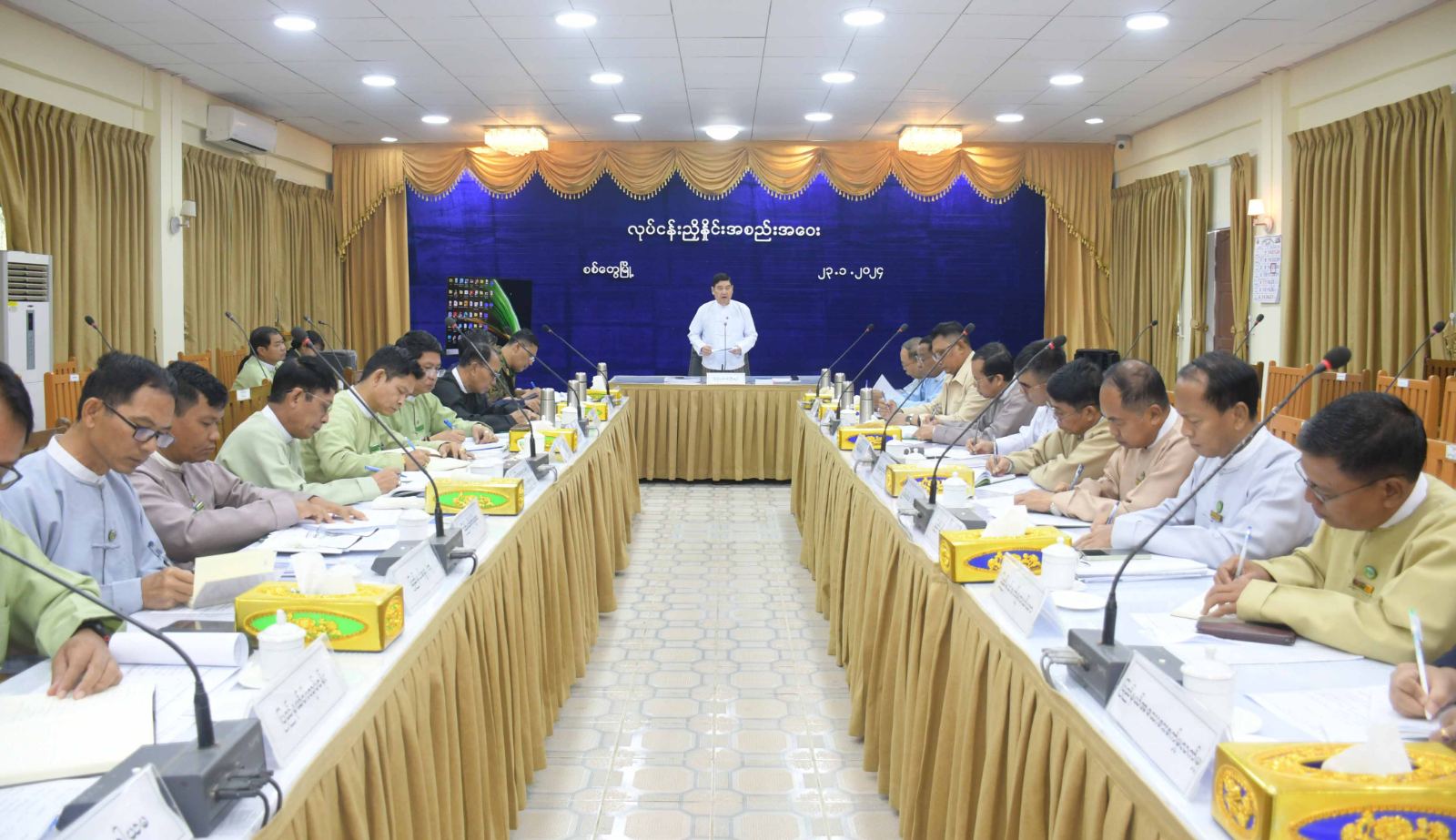 ရခိုင်ပြည်နယ်အတွင်း စိုက်ပျိုးရေး၊ မွေးမြူရေး MSMEနှင့် နိုင်ငံ့စီးပွားမြှင့်တင်ရေး ရန်ပုံငွေများနှင့် ပတ်သက်၍ လုပ်ငန်းလမ်းညွှန်အကောင်အထည်ဖော်ရေးအစည်းအဝေးကို ယနေ့နံနက်ပိုင်းက ရခိုင်ပြည်နယ်အစိုးရအဖွဲ့ရုံး အစည်းအဝေးခန်းမ၌ ကျင်းပရာ ရခိုင်ပြည်နယ်ဝန်ကြီးချုပ် ဦးထိန်လင်း၊ ပြည်နယ်အစိုးရအဖွဲ့ဝင်များ၊ ပြည်နယ်အဆင့်ဌာနဆိုင်ရာများ တက်ရောက်ကြသည်။