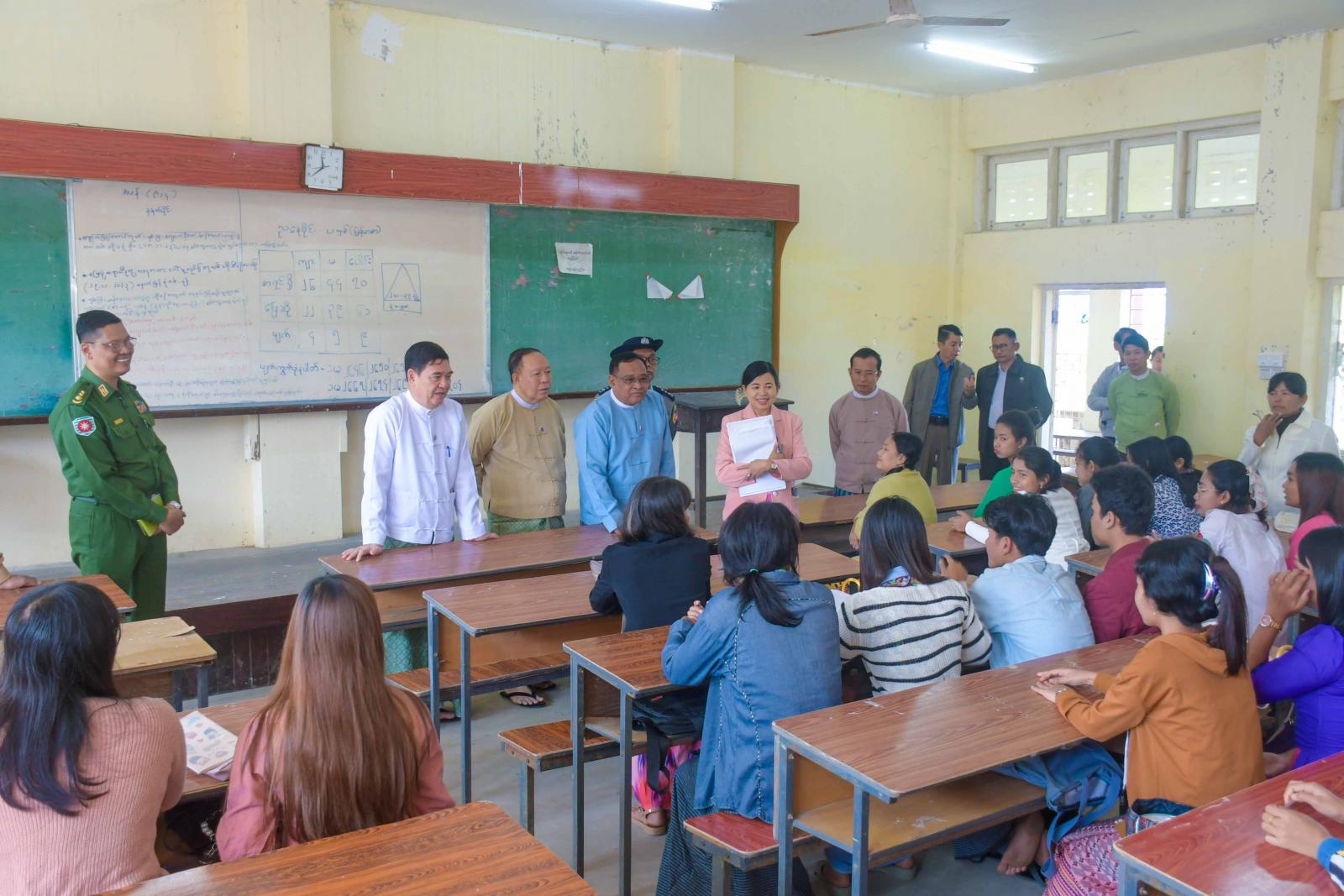 ဦးစွာ ပြည်နယ်ဝန်ကြီးချုပ်နှင့် အဖွဲ့သည် တက္ကသိုလ်အတွင်းရှိ စာသင်ဆောင်များတွင် ကျောင်း သား၊ ကျောင်းသူများ ပညာသင်ကြားနေမှုအား လှည့်လည်ကြည့်ရှုပြီး ကျောင်းသား၊ ကျောင်းသူများ နှင့်တွေ့ဆုံကာ အေးချမ်းစွာ ပညာသင်ကြားနိုင်ရေးစီစဉ်ဆောင်ရွက်နေမှုနှင့် ကျောင်းသား၊ ကျောင်းသူများအနေဖြင့် ဆရာ၊ ဆရာမများ၏ သင်ကြားပို့ချပေးမှုကို လေ့လာမှတ်သားကာ မိမိတို့ဘဝတိုးတက် ရေးအတွက် ကြိုးစားသင်ယူမှတ်သားကြရန် အားပေးစကားပြောကြားကြသည်။