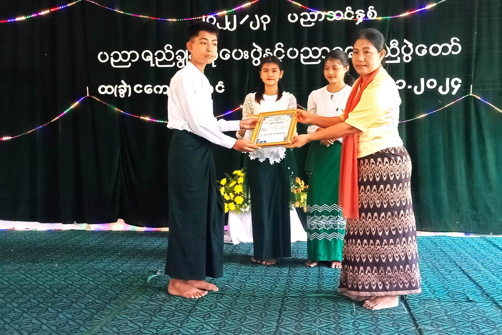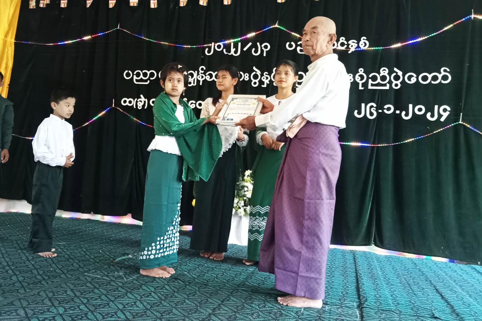 ဆက်လက်၍ ပညာရည်ချွန်ဆု ဘက်စုံထူးချွန်ဆု၊ ကျောင်းတက်အမှန်ဆုံး ဆရာ/ဆရာမဆုများကို ကျောင်းအုပ်ဆရာမကြီး၊ ကျောင်းအကျိုးဆောင်အဖွဲ့နာယကကြီးများ၊ အကျိုးတော်ဆောင်အဖွဲ့ဥက္ကဋ္ဌနှင့် အဖွဲ့ဝင်များနှင့် အလှူရှင်များက ဆုများအသီးသီးချီးမြှင့် ပေးခဲ့ကြကြောင်းသိရသည်။