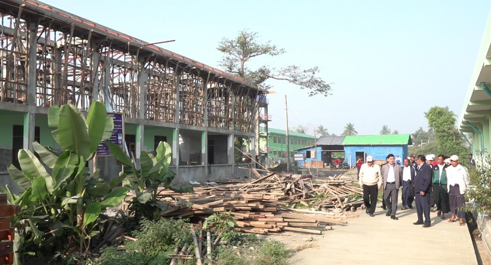 ဆက်လက်ပြီး ပြည်နယ်ဝန်ကြီးချုပ်နှင့်အဖွဲ့သည် ၂၀၂၃-၂၀၂၄ ခုဘဏ္ဍာရေးနှစ် ပြည်ထောင်စုရန်ပုံငွေဖြင့် ဆောင်ရွက်လျက်ရှိသည့် စစ်တွေမြို့ အ.ထ.က(၁) စက်မှု၊ စိုက်ပျိုးရေးနှင့်မွေးမြူရေးအထက်တန်းကျောင်း (၁၁၄’x၂၃’) RCC (၂)ထပ်ဆောက်လုပ်ခြင်းလုပ်ငန်းအား သွားရောက်ကြည့်ရှုပြီး တာဝန်ရှိသူများကို သတ်မှတ်စံချိန်စံညွှန်းနှင့်အညီ သတ်မှတ်ကာလအတွင်း အချိန်မီပြီးစီးနိုင်ရေးဆောင်ရွက် သွားကြရန် မှာကြားခဲ့သည်။