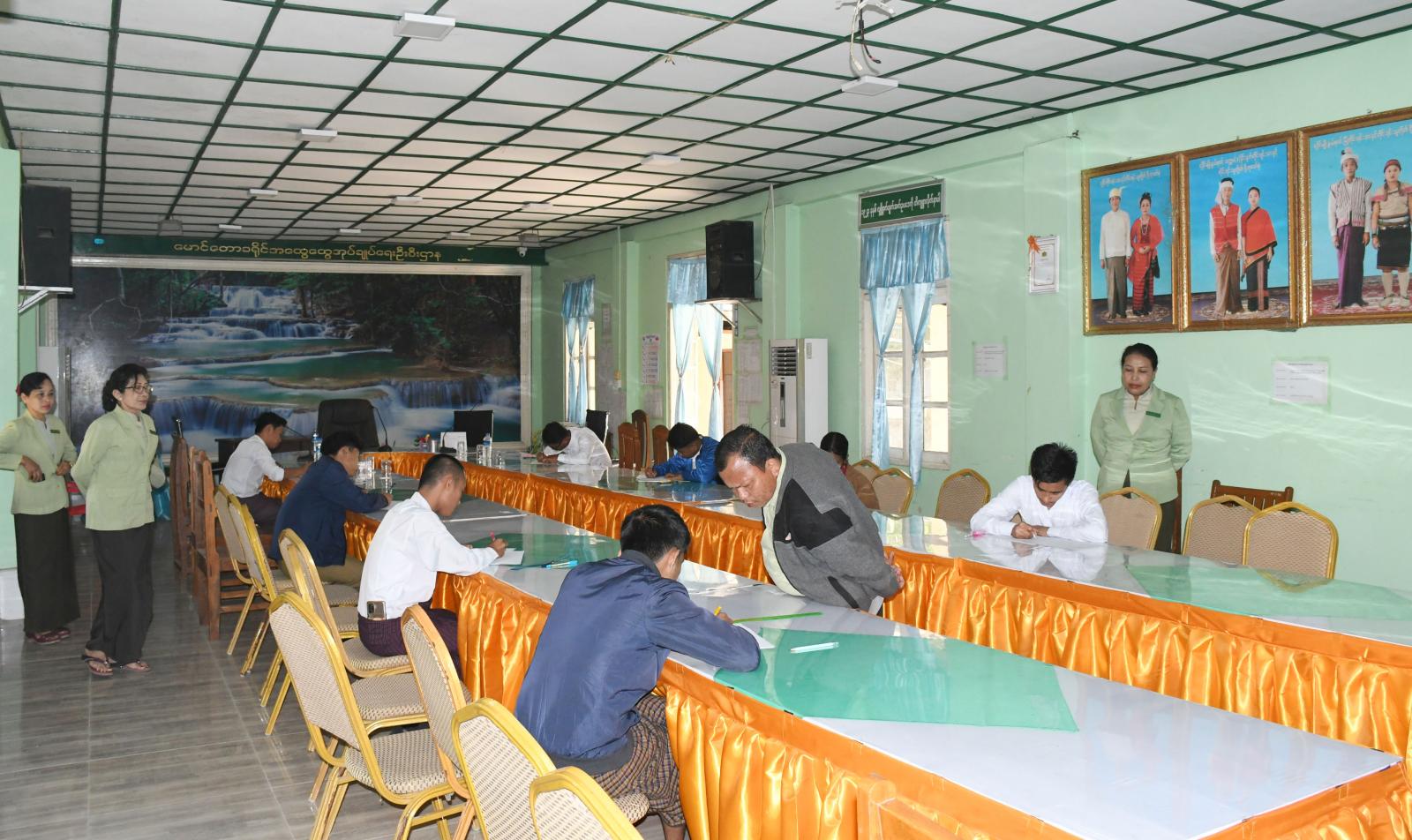 ရခိုင်ပြည်နယ်၊ မောင်တောခရိုင်အထွေထွေအုပ်ချုပ်ရေးဦးစီးဌာနရုံးတွင် လစ်လပ်လျက်ရှိသည့် ရာထူးနေရာများအတွက် အရည်အချင်းစစ် စာမေးပွဲများကို ဇန်နဝါရီ ၂၆ ရက်နေ့ နံနက်ပိုင်းက ခရိုင်အထွေထွေအုပ်ချုပ်ရေးဦးစီးဌာနရုံး အစည်းအဝေးခန်းမအတွင်း ပြုလုပ်ခဲ့သည်။
