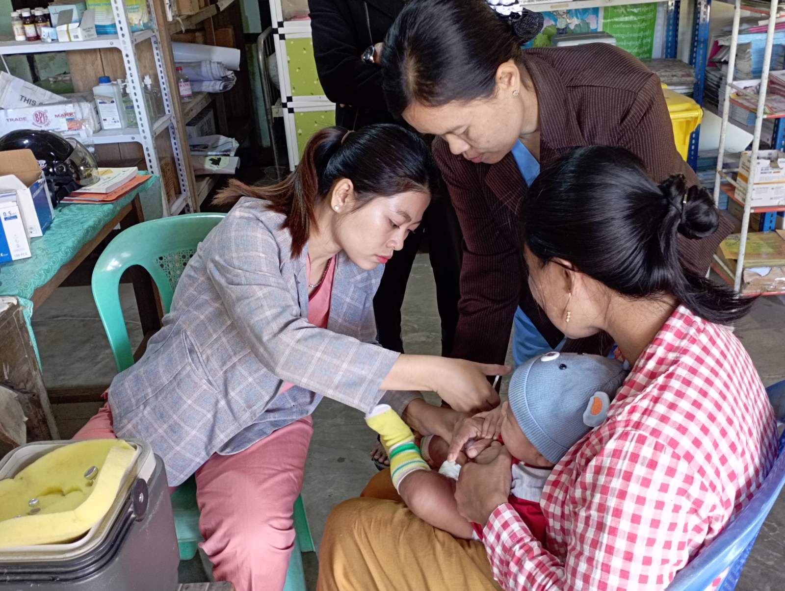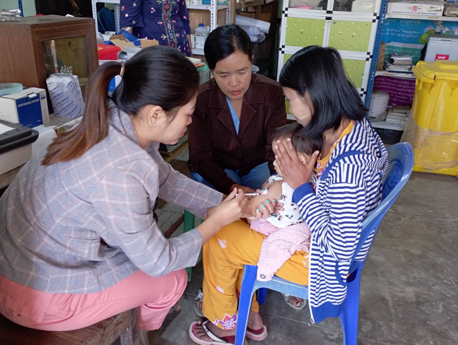 ကလေးငယ်များကို ပုံမှန်ကာကွယ်ဆေးများ ထိုးနှံတိုက်ကျွေးပေးရာတွင် အသက်(၂)လအရွယ် ကလေးငယ်များကို ဘီစီဂျီ၊ ပိုလီယို(ပထမ)၊ ပြင်းထန်ဝမ်းပျက်ဝမ်းလျှော (ရိုတာ)(ပထမ)၊ ပြင်းထန် အဆုတ်ရောင် (ပီစီဗီ)(ပထမ)၊ ဆုံဆို့၊ ကြက်ညှာ၊ မေးခိုင်၊ အသည်းရောင်အသားဝါ(ဘီ)၊ ဦးနှောက်အမြှေးရောင် (ငါးမျိုးစပ်ကာကွယ်ဆေး)ကိုလည်းကောင်း၊ အသက်(၄)လအရွယ် ကလေးငယ်များကို ပိုလီယို(ဒုတိယ)၊ ပြင်းထန်ဝမ်းပျက်ဝမ်းလျှော (ရိုတာ) (ဒုတိယ)၊ ပိုလီယိုထိုးဆေး၊ ပြင်းထန်အဆုတ်ရောင် (ပီစီဗီ)(ဒုတိယ)၊ ဆုံဆို့၊ ကြက်ညှာ၊ မေးခိုင်၊ အသည်းရောင်အသားဝါ(ဘီ)၊ ဦးနှောက် အမြှေးရောင် (ငါးမျိုးစပ်ကာကွယ်ဆေး) (ဒုတိယ) ကို လည်းကောင်း၊ အသက်(၆)လအရွယ် ကလေးငယ်များကို ပိုလီယို(တတိယ)၊ ပြင်းထန် အဆုတ်ရောင် (ပီစီဗီ) (တတိယ)၊ ဆုံဆို့၊ ကြက်ညှာ၊ မေးခိုင်၊ အသည်းရောင် အသားဝါ(ဘီ)၊ ဦးနှောက်အမြှေးရောင် (ငါးမျိုးစပ်ကာကွယ်ဆေး) (တတိယ)ကို လည်းကောင်း၊ အသက်(၉)လ အရွယ် ကလေးငယ်များကို ဝက်သက်-ဂျိုက်သိုး(ပထမ)၊ ဂျပန်ဦးနှောက်ရောင် ကာကွယ်ဆေး များနှင့် အသက်(၁)နှစ်ခွဲကလေးငယ်များကို ဝက်သက်-ဂျိုက်သိုး(ဒုတိယ)၊ ဆုံဆို့၊ ကြက်ညှာ၊ မေးခိုင်၊ အသည်းရောင်အသားဝါ(ဘီ)၊ ဦးနှောက်အမြှေးရောင် (ငါးမျိုးစပ်ကာကွယ်ဆေး) (စတုတ္ထ) စသည့် ကာကွယ်ဆေးများကို ထိုးနှံတိုက်ကျွေးပေးလျက်ရှိကြောင်း သိရသည်။