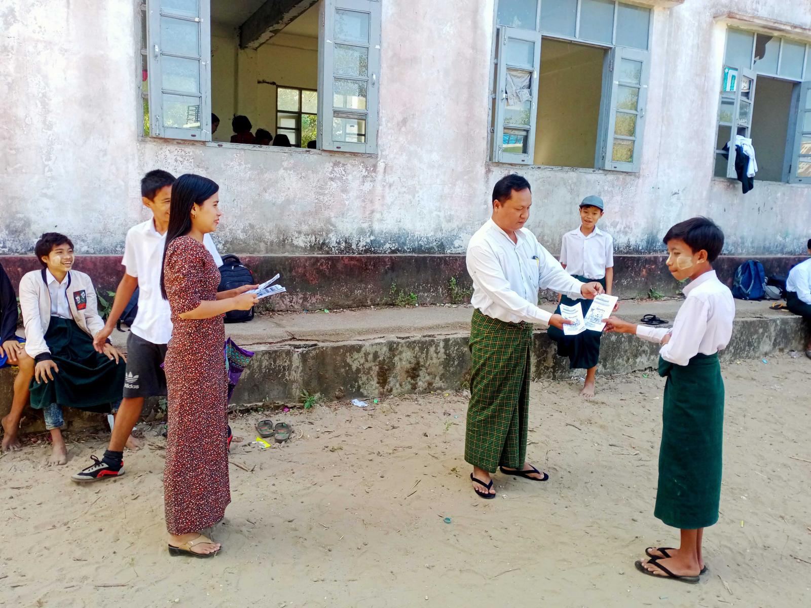 ရခိုင်ပြည်နယ်၊ ကျောက်ဖြူမြို့၌ ၂၀၂၄ ခုနှစ်၊ ဖေဖော်ဝါရီလ (၁၂)ရက်နေ့တွင် ကျရောက်မည့် (၇၇)နှစ်မြောက် ပြည်ထောင်စုနေ့ အထိမ်းအမှတ် အသိပညာပေး သတင်းစကားလက်ကမ်း စာစောင်များကို ယနေ့နံနက်ပိုင်းက ပြန်ကြားရေးနှင့်ပြည်သူ့ဆက်ဆံရေးဦးစီးဌာန ရုံးဝန်ထမ်းများက အခြေခံပညာကျောင်းများသို့သွားရောက်၍ အခမဲ့ဖြန့်ဝေပေးခဲ့သည်။