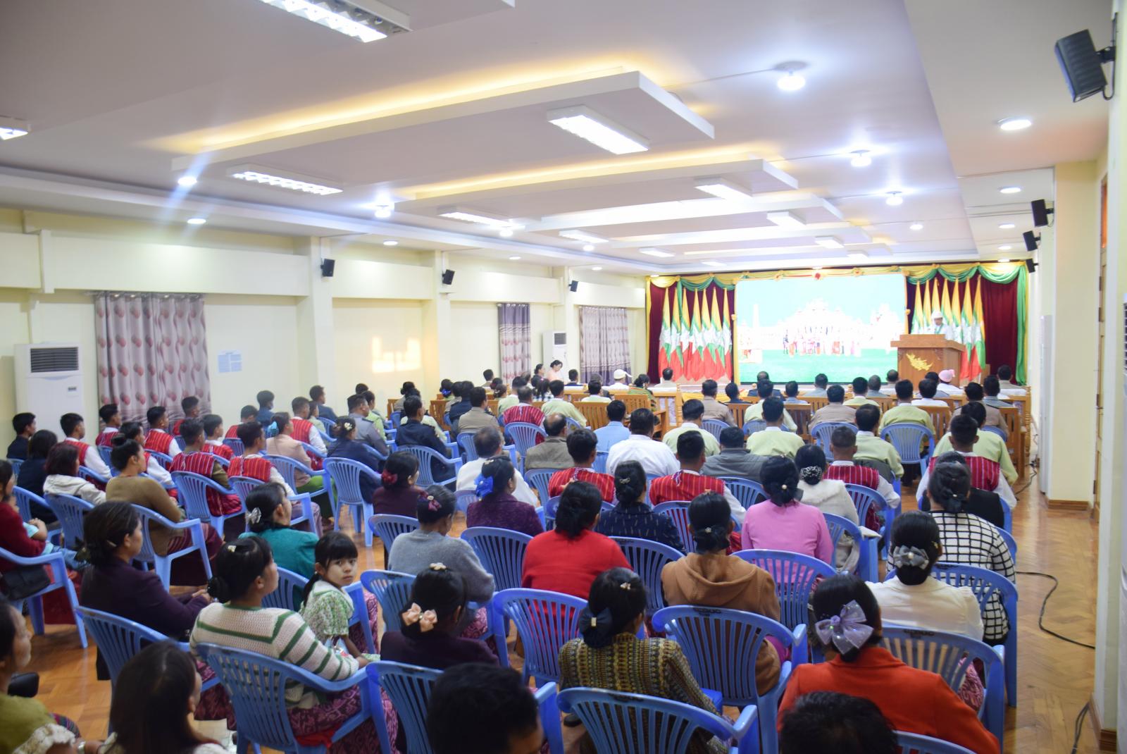 (၇၇)နှစ်မြောက် ပြည်ထောင်စုနေ့ သဝဏ်လွှာဖတ်ကြားခြင်း အခမ်းအနားကို ယနေ့ နံနက် ပိုင်း(၇)နာရီအချိန်တွင် ပြည်နယ်ခန်းမ၌ ကျင်းပပြုလုပ်ရာ ကယားပြည်နယ်ဝန်ကြီးချုပ် ဦးဇော်မျိုးတင်၊ ဒေသကွပ်ကဲရေးမှူး ဗိုလ်မှူးချုပ် ဇော်မင်း၊ ကယားပြည်နယ်အစိုးရအဖွဲ့ဝင် ဝန်ကြီးများ၊ ပြည်နယ်၊ ခရိုင်၊ မြို့နယ်အဆင့်ဌာန ဆိုင်ရာများနှင့် တိုင်းရင်းသား/တိုင်းရင်းသူများ၊ ရပ်ကွက်/ကျေးရွာအုပ်ချုပ်ရေးမှူးများနှင့် ဖိတ်ကြားထားသော ဧည့်သည်တော်များ တက်ရောက်ခဲ့ကြသည်။