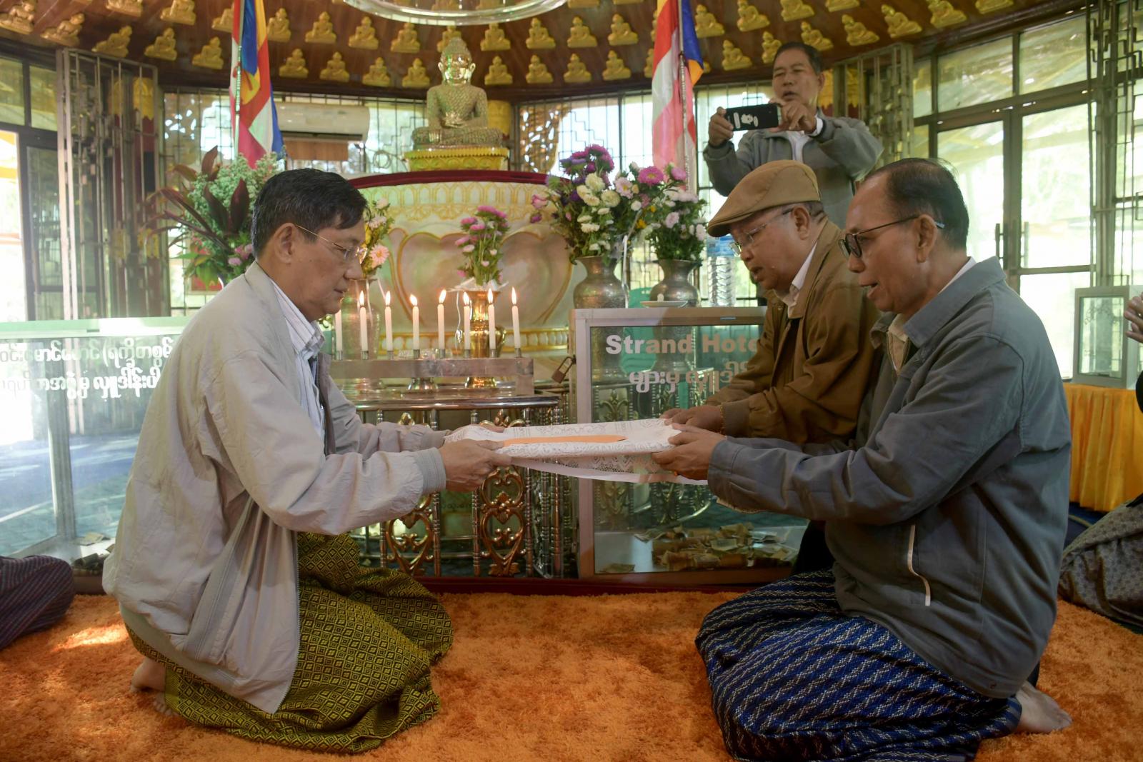 ဦးစွာ နိုင်ငံတော်စီမံအုပ်ချုပ်ရေးကောင်စီအဖွဲ့ဝင် ဒေါက်တာဘရွှေနှင့်အဖွဲ့သည် ရှေးဟောင်းသမိုင်းဝင် ဦးရဲကျော်သူ ကျောင်းတိုက်သို့ သွားရောက်ပြီး ကျောင်းထိုင်ဆရာတော်အား ဖူးမြော်ကာ လှူဖွယ်ဝတ္ထုပစ္စည်းများ ဆက်ကပ်လှူဒါန်းကြပြီး ဦးရဲကျော်သူကျောင်းတိုက် ပြုပြင်ပြီးစီးနေမှုနှင့် ပြုပြင်နေမှုအခြေအနေများ၊ သကျမုနိသိမ်တော်ကြီး ပြုပြင်နေမှုအခြေအနေများနှင့် လက်ရှိ ရခိုင်ပြည်နယ်အတွင်းဖြစ်ပွားနေသည့် လက်နက်ကိုင်ပဋိပက္ခများ၏ အခြေအနေများ၊ ဒေသတည်ငြိမ်အေးချမ်းရေး၊ တရားဥပဒေစိုးမိုးရေး ဆောင်ရွက်မှုအခြေအနေများကို လျောက်ထားကြသည်။