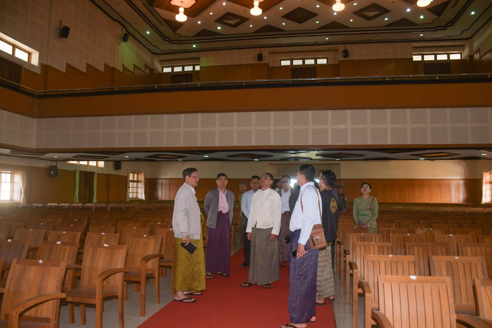 ဆက်လက်၍ နိုင်ငံတော်စီမံအုပ်ချုပ်ရေးကောင်စီအဖွဲ့ဝင် ဒေါက်တာ ဘရွှေနှင့်အဖွဲ့သည် ဦးရဲကျော်သူ ကျောင်းတိုက်နှင့် သကျမုနိသိမ်တော်ကြီးပြုပြင်နေမှုကို သွားရောက်ကြည့်ရှုကြရာ ရှင်းလင်းဆောင်၌ ဆောက်လုပ်ရေးလုပ်ငန်း တာဝန်ခံက ကျောင်းတိုက်နှင့် သိမ်တော်ကြီးအား အကြီးစားပြုပြင်နေမှု၊ အဆင့်အဆင့် ပြုပြင်ပြီးစီးနေမှုနှင့် ဆက်လက်ပြုပြင်နေမှုတို့ကို ရှင်းလင်းတင်ပြရာ ပြည်နယ်ဝန်ကြီးချုပ်နှင့် တာဝန်ရှိသူများက ဖြည့်စွက်ရှင်းလင်းတင်ပြကြပြီး နိုင်ငံတော်စီမံအုပ်ချုပ်ရေးကောင်စီအဖွဲ့ဝင် ဒေါက်တာဘရွှေက လိုအပ်သည်များကို မှာကြားခဲ့သည်။