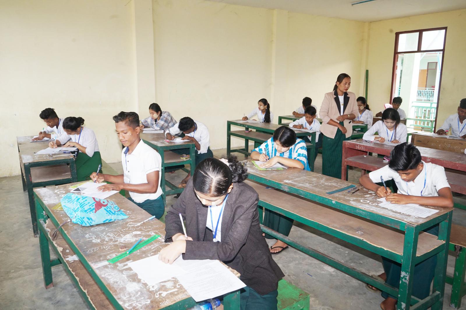 ရခိုင်ပြည်နယ်၊ မောင်တောခရိုင်၊ မောင်တောမြို့၌ အခြေခံပညာကျောင်းများတွင် ၂၀၂၃-၂၀၂၄ ပညာသင်နှစ် (Grade-5)နှင့်(Grade-9) သင်ရိုးသစ်စာမေးပွဲ သင်္ချာဘာသာရပ်အား ယမန်နေ့ နံနက် ၉ နာရီက သက်ဆိုင်ရာစာစစ်ဌာနကျောင်းများတွင် ဖြေဆိုလျက်ရှိသည်။
